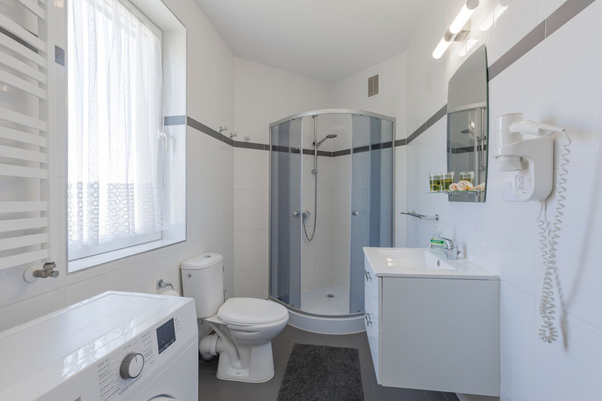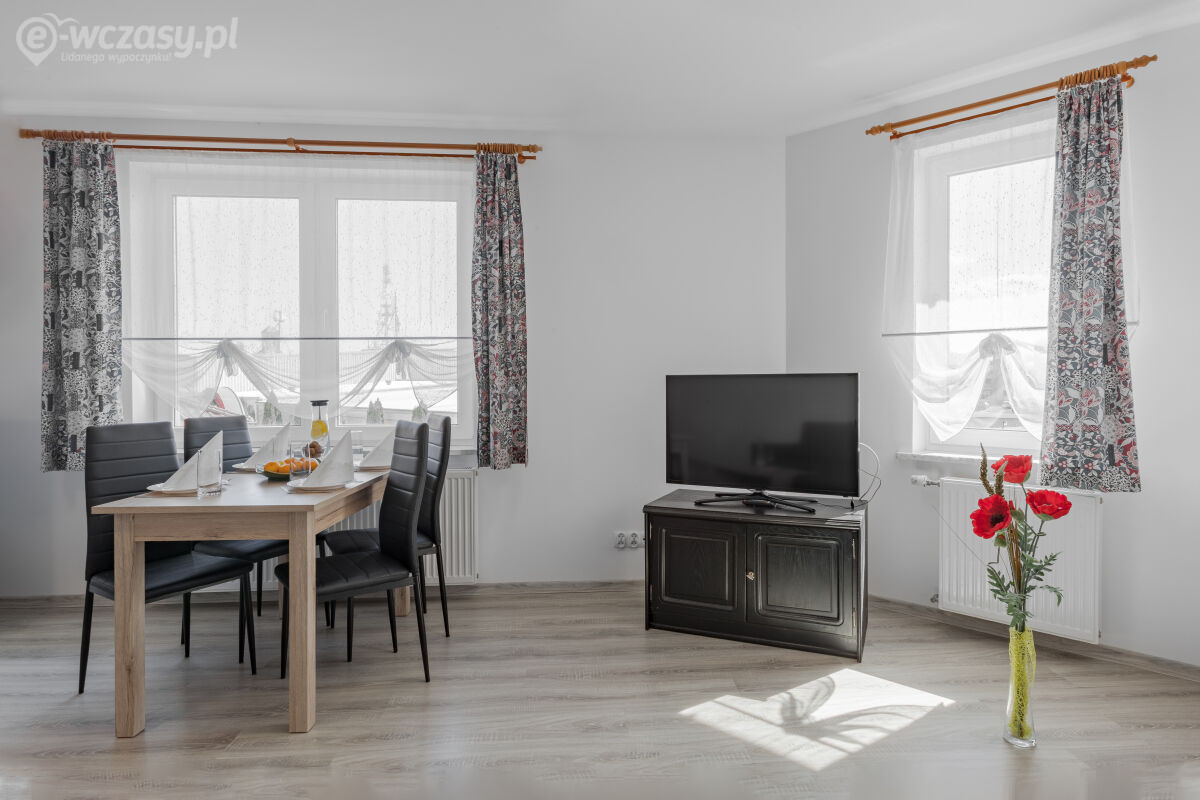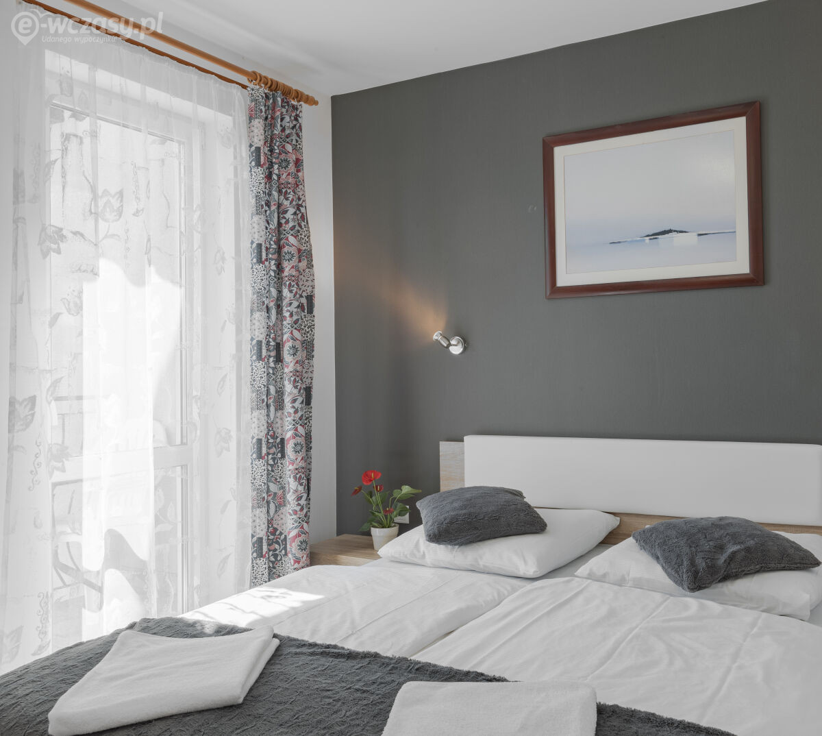 Dysponujemy 50 miejscami w pokojach 2, 3 osobowych. W każdym pokoju znajduje się przestronna łazienka z natryskiem, a także balkon. Do dodatkowego wyposażenia pokoi nalezą: TV- Sat, lodówka , czajnik bezprzewodowy, kilka drobnych naczyń, jak również sprzęt plażowy (parawany). Do dyspozycji gości na korytarzu jest również lodówka, mikrofalówka, żelazko i deska do prasowania, odkurzacz . Bardziej wymagającym gościom oferujemy apartamenty z wyposażonymi aneksami kuchennymi i jeden z pralką. Dom posiada ogród z miejscem do grillowania i opalania się oraz możliwość parkowania aut na ogrodzonej posesji. W pochmurne dni można pograć w tenisa stołowego, a dzieci mogą bawić się w kąciku zabaw. Prowadzimy aktualny wykaz imprez kulturalnych organizowanych w Kołobrzegu. Na miejscu znajduje się mała restauracja z ogródkiem piwnym z parasolami, gdzie serwujemy śniadania, dania kuchni polskiej i różne napoje .