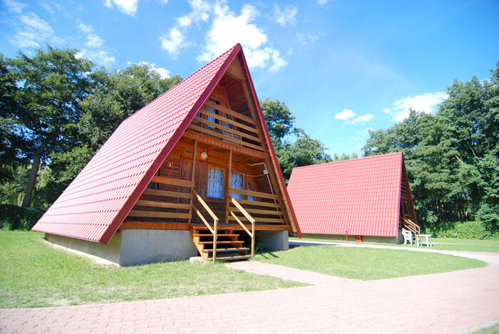 10 domków 4-osobowych typu "Wagus" (dwukondygnacyjnych ze spadzistym dachem) ,