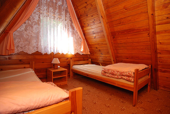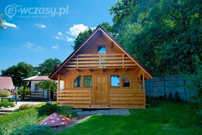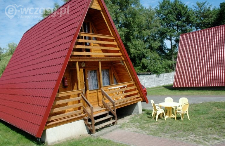 2 domków drewnianych 8-osobowych typu "Wagus Lux" - (dwukondygnacyjnych ze spadzistym dachem)