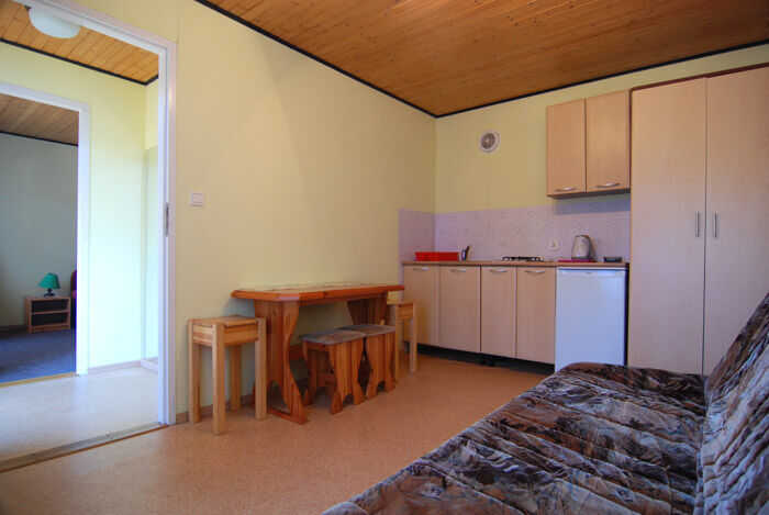 Budynek murowany z 6 apartamentami jednopokowymi 2 osobowymi - każdy apartament (21 m2) składa się z: