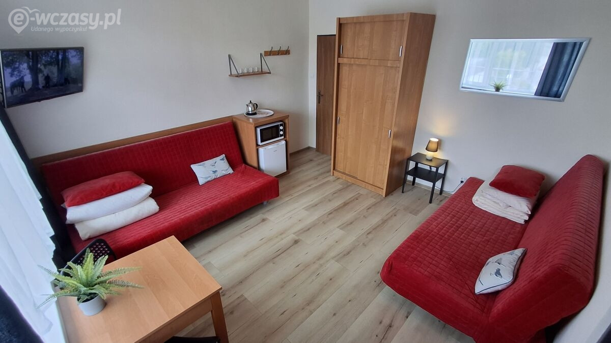 Wyjątkowa atmosfera oraz piękno otaczającej przyrody to gwarancja prawdziwego relaksu oraz udanego, rodzinnego wypoczynku. W naszym ośrodku oddajemy do dyspozycji naszych Gości noclegi z wyżywieniem, pokoje i dwupokojowe studia w budynku głównym oraz pokoje Economy w sześciu murowanych pawilonach parterowych w zabudowie szeregowej. Wszystkie studia i prawie wszystkie pokoje w budynku głównym posiadają balkony lub tarasy. Pokoje Economy w pawilonach szeregowych mają samodzielne wejścia przez zadaszone ganki. Wszystkie posiadają też łazienki i telewizory. Jednorazowo możemy przyjąć do 220 osób. To wszystko sprawia, że są to idealne noclegi dla rodzin z dziećmi.