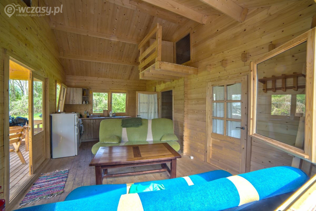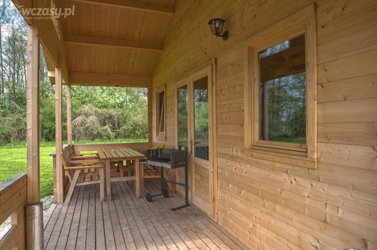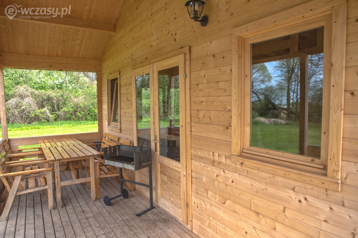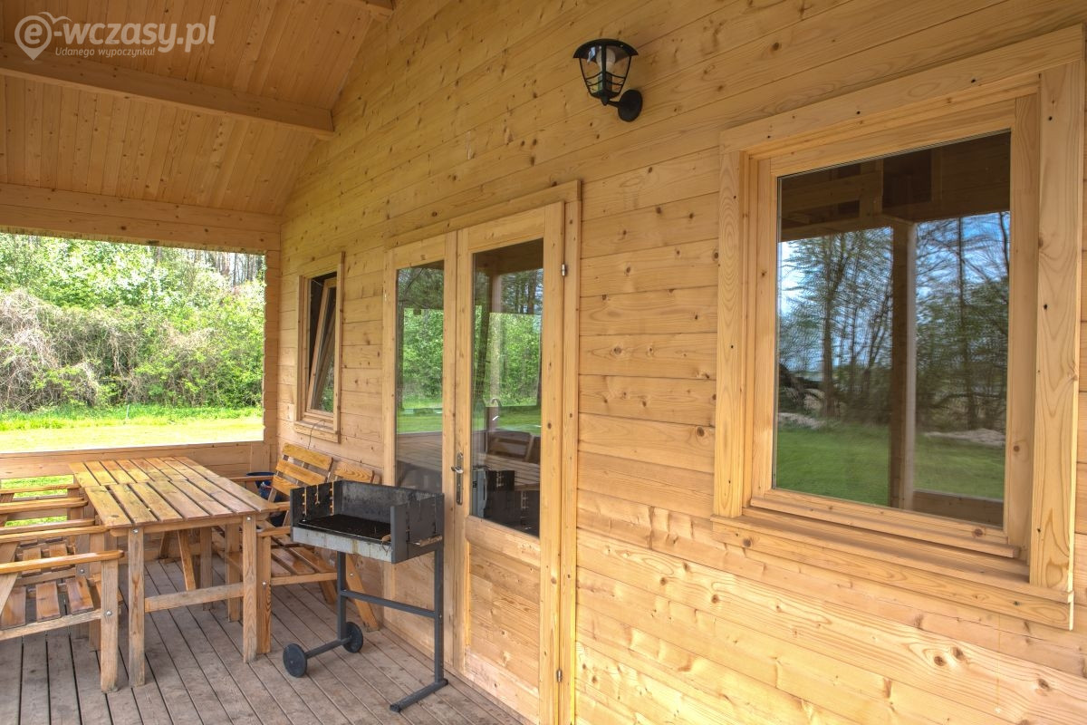 Domek jest wykończony w bardzo wysokim standardzie, z 3 sypialniami, łazienką, toaletą i salonem. Wyposażony jest w aneks kuchenny, kino domowe, klimatyzację, grill itp. Do dyspozycji jest ponad 10 ha terenu z lasem. Jest to miejsce bardzo spokojne, na uboczu, nie docierają tu spacerowicze, brak też innych turystów. Panuje tu absolutny spokój i cisza. Do bezpłatnego WYŁĄCZNEGO użytku katamaran, żaglówka OMEGA duże łodzie wiosłowe, kajaki, oraz rowery.