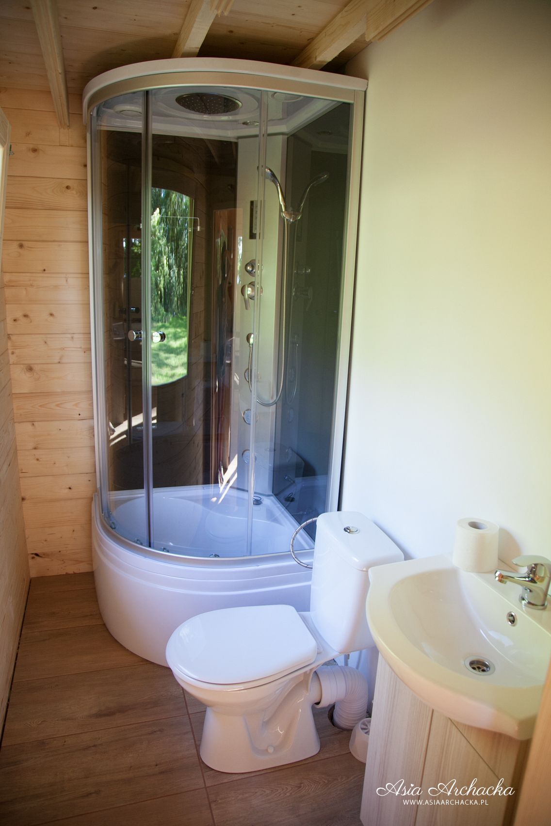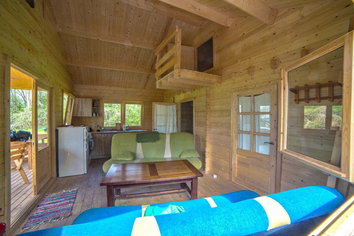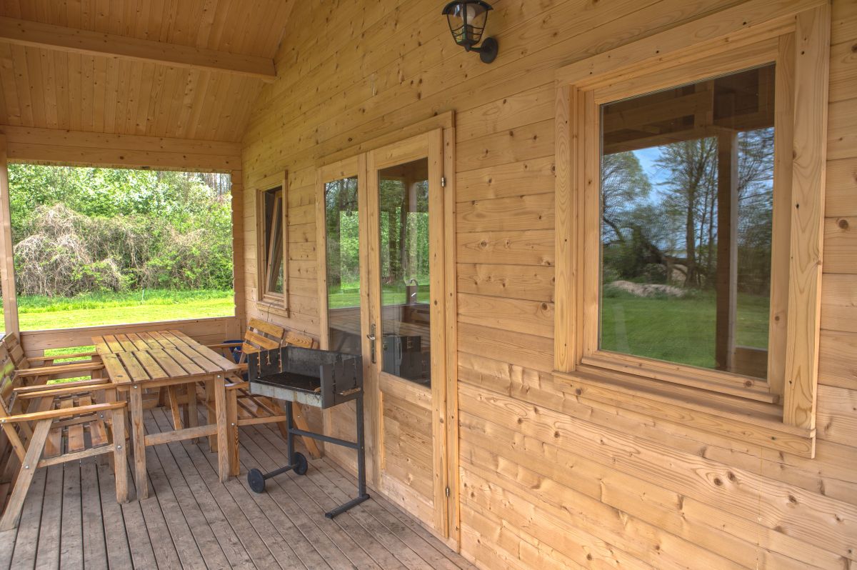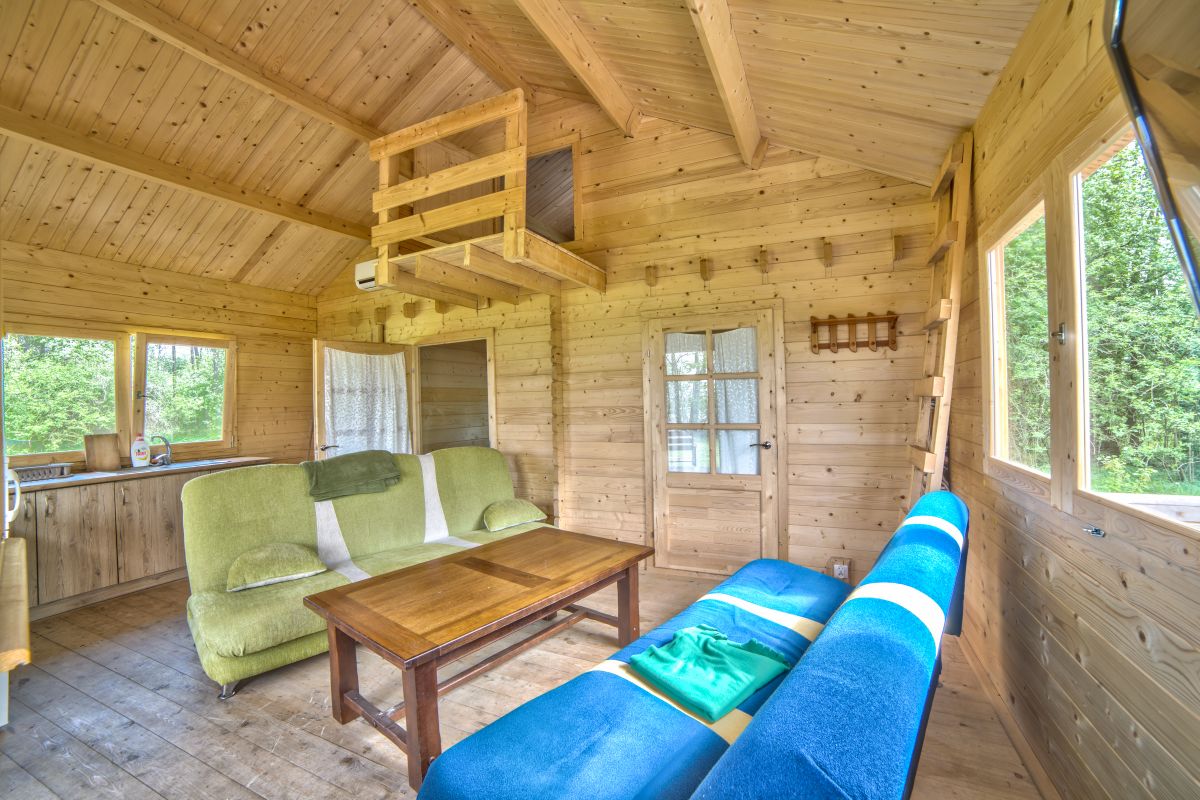 Domek jest wykończony w bardzo wysokim standardzie, z 3 sypialniami, łazienką, toaletą i salonem. Wyposażony jest w aneks kuchenny, kino domowe, klimatyzację, grill itp. Do dyspozycji jest ponad 10 ha terenu z lasem. Jest to miejsce bardzo spokojne, na uboczu, nie docierają tu spacerowicze, brak też innych turystów. Panuje tu absolutny spokój i cisza. Do bezpłatnego WYŁĄCZNEGO użytku katamaran, żaglówka OMEGA duże łodzie wiosłowe, kajaki, oraz rowery.