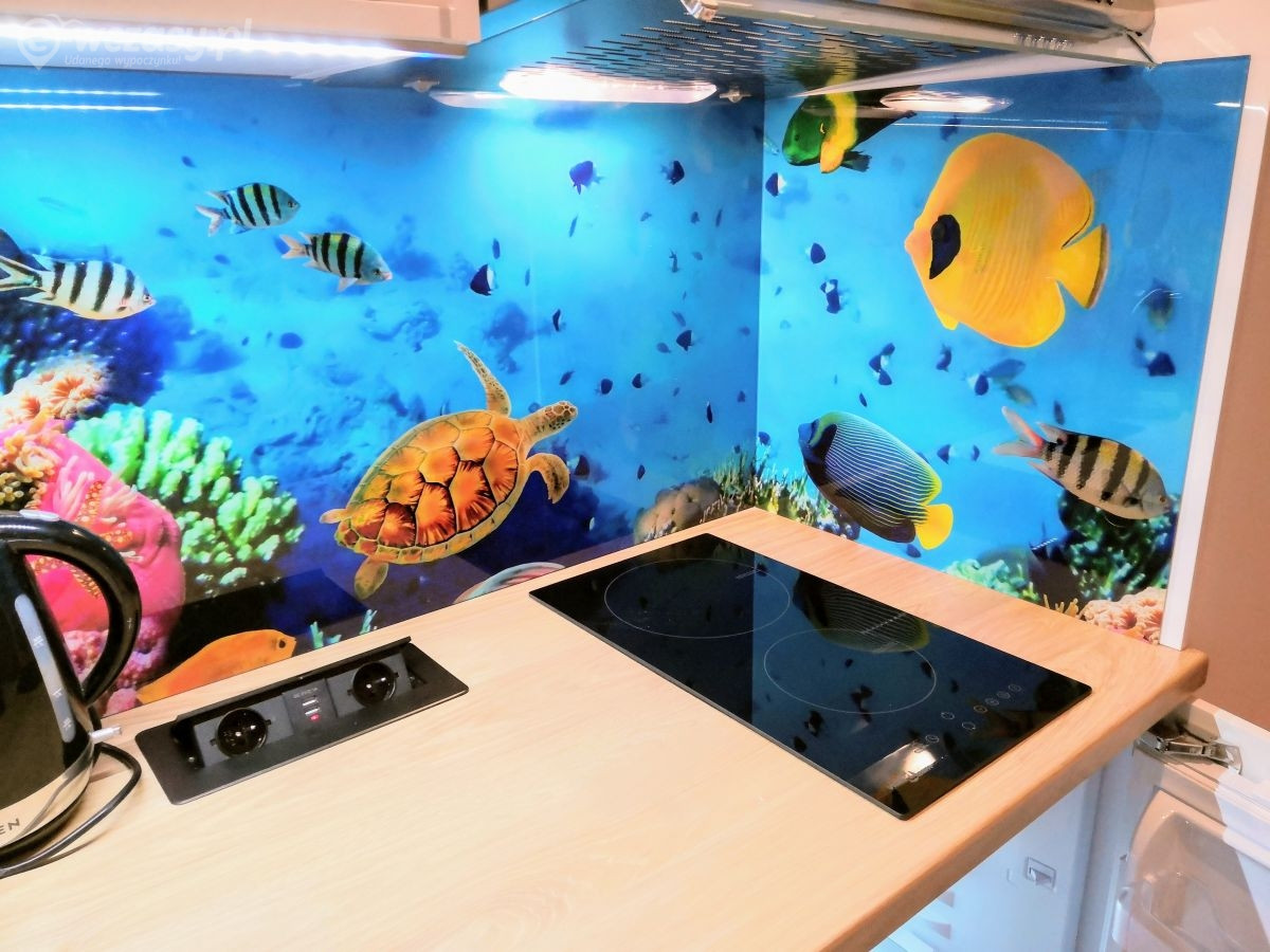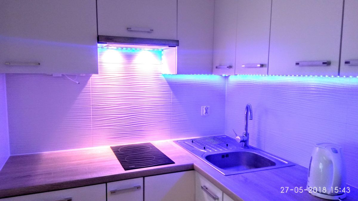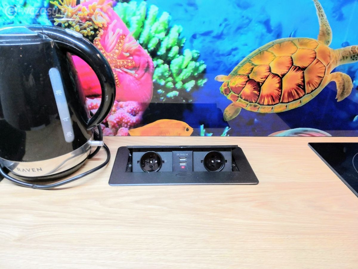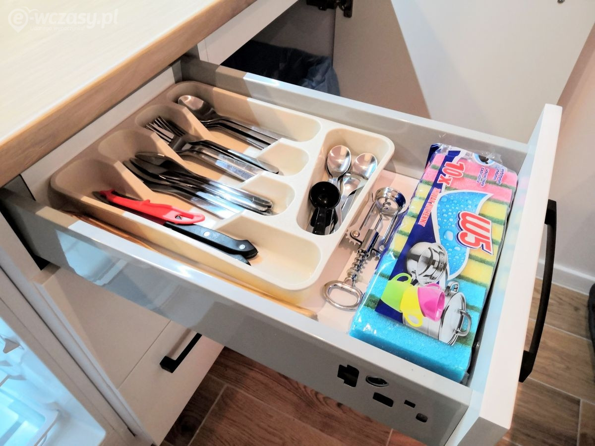 - kuchnia - aneks kuchennym w pełni wyposażony: kuchenka mikrofalowa, zmywarka, ekspres do kawy, płyta grzewcza, lodówka, garnki, patelnie, sztućce, talerze, pełna chemia do kuchni i do łazienki.