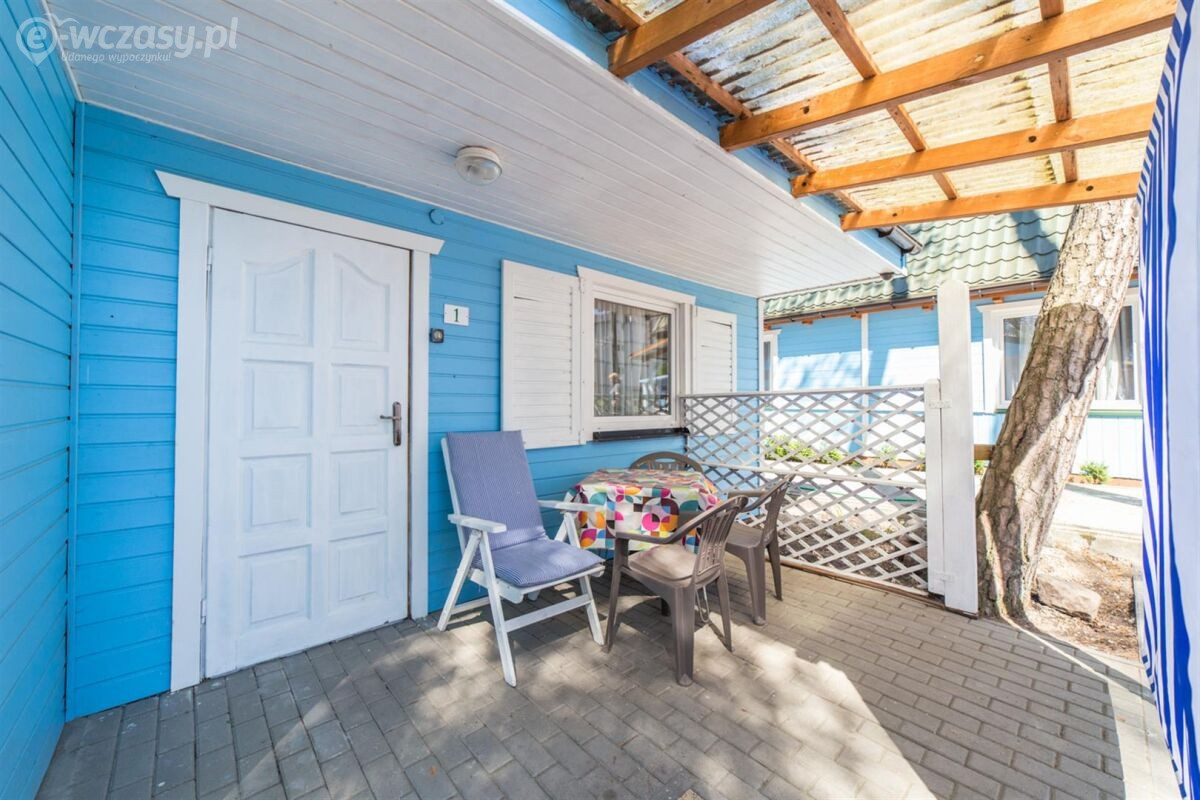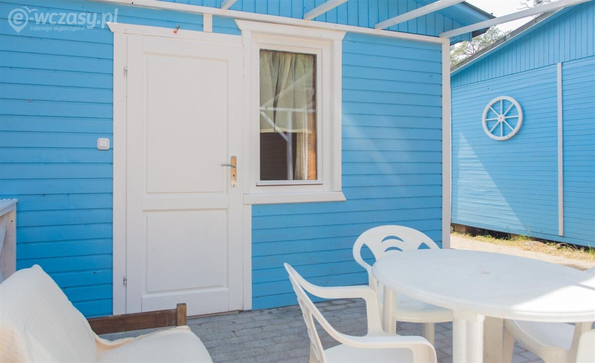 · przed każdym domkiem znajduje się zadaszony taras wyposażony w krzesła i stół.