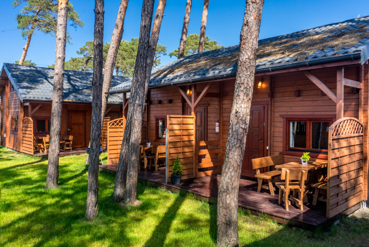 Na terenie naszego ośrodka znajduje się 5 domków w zabudowie bliźniaczej oraz 2 domki pojedyncze, otoczone pięknymi sosnami zapewniającymi ukojenie w upalne dni.
