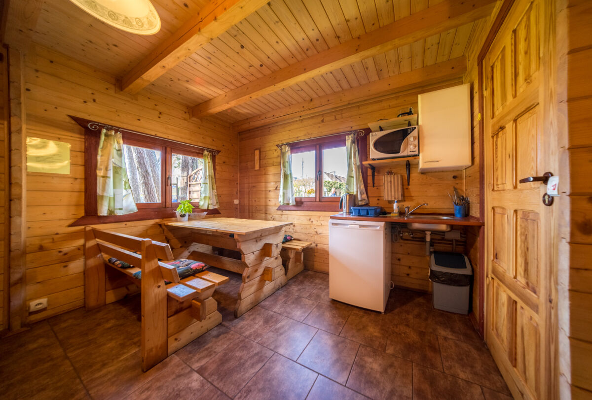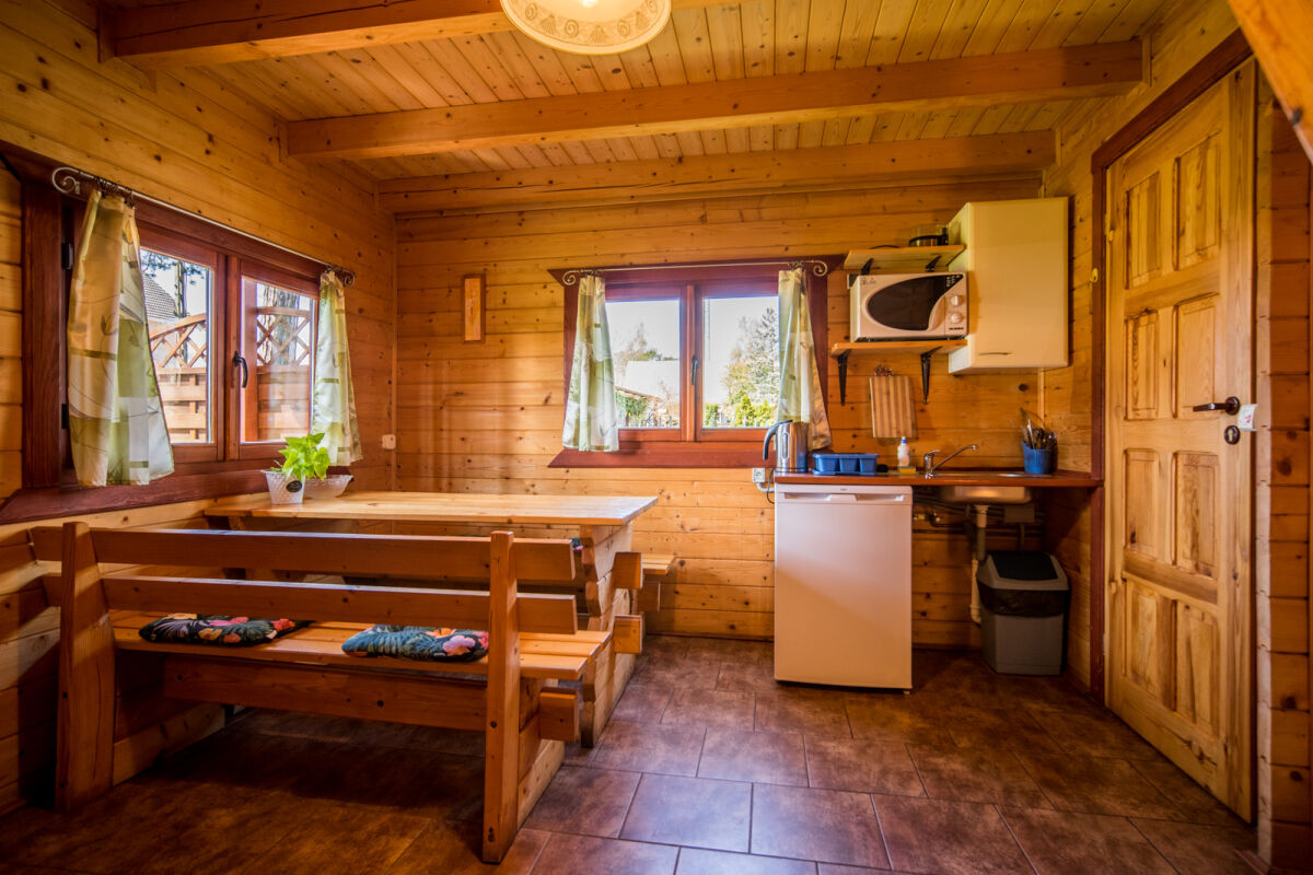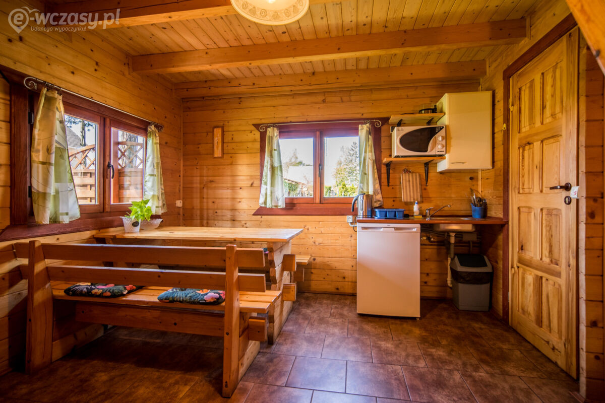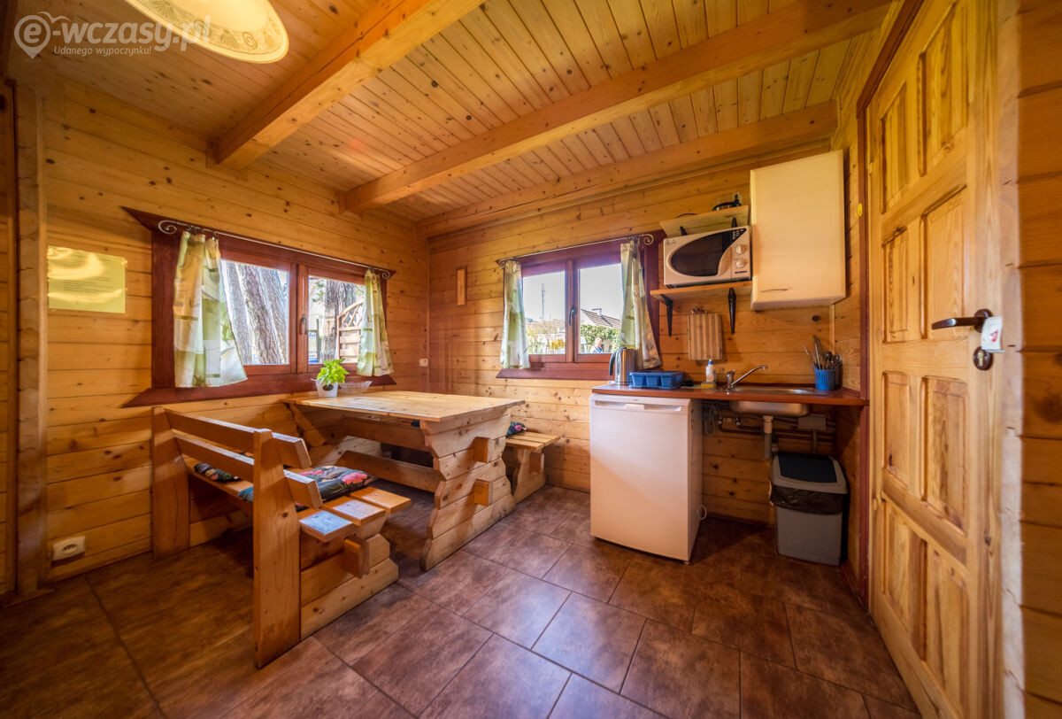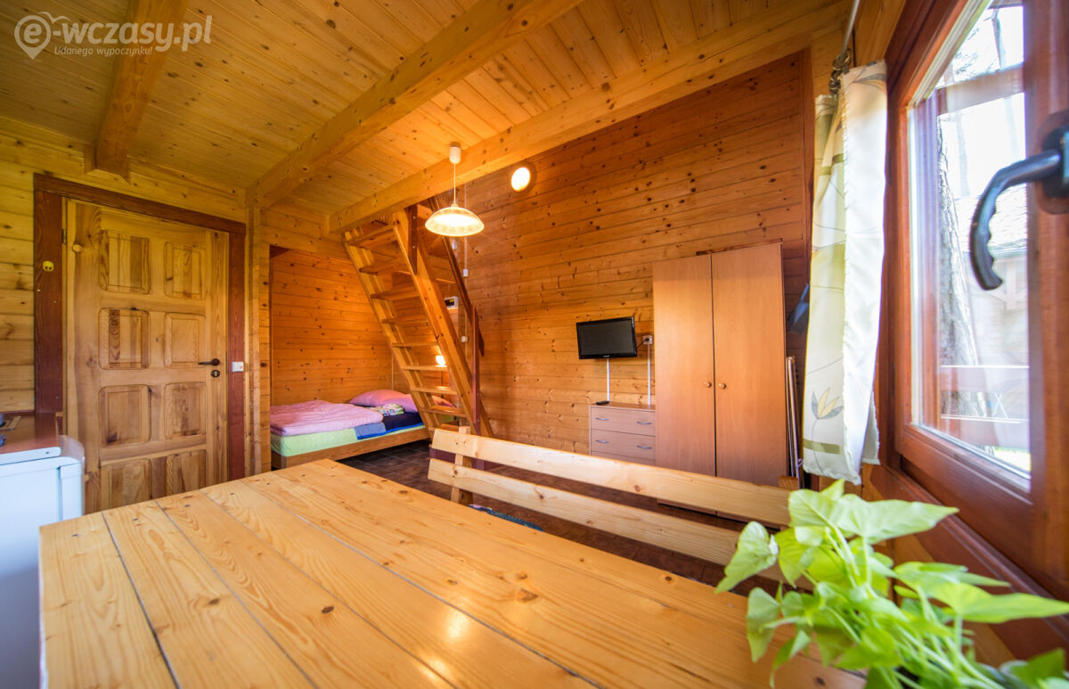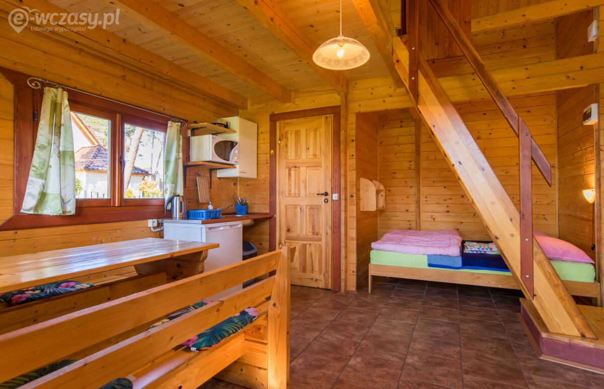 Każdy z naszych domków może pomieścić do 5 osób. Wewnątrz domków znajduje się wygodne łóżko podwójne na parterze oraz trzy pojedyncze łóżka na piętrze, zapewniając wszystkim gościom wygodną przestrzeń do spania. Aneks kuchenny wyposażony jest w lodówkę, czajnik, kuchenkę mikrofalową, garnek elektryczny oraz zestaw naczyń i sztućców.