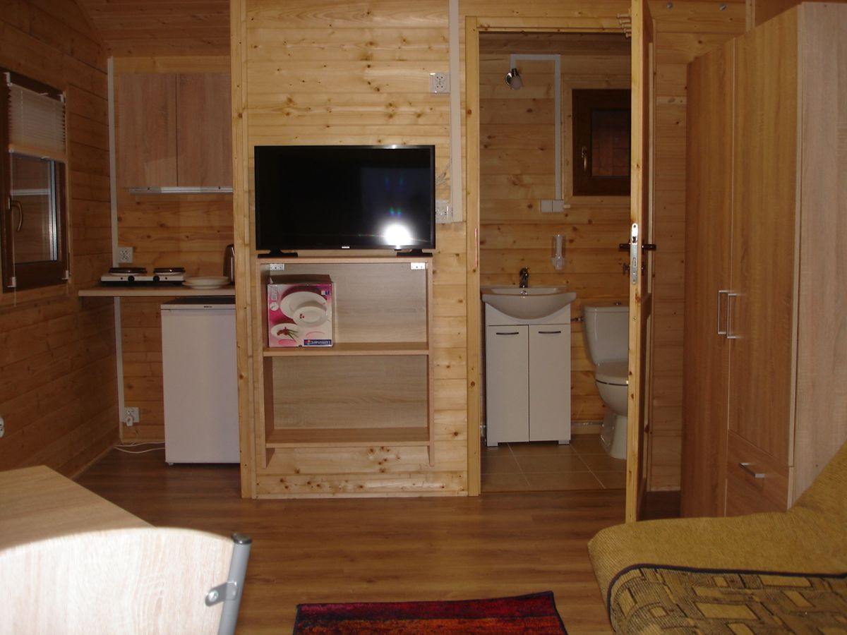 - domki drewniane 3 - osobowe ( pokój z aneksem, sypialnią, łazienka, taras)
