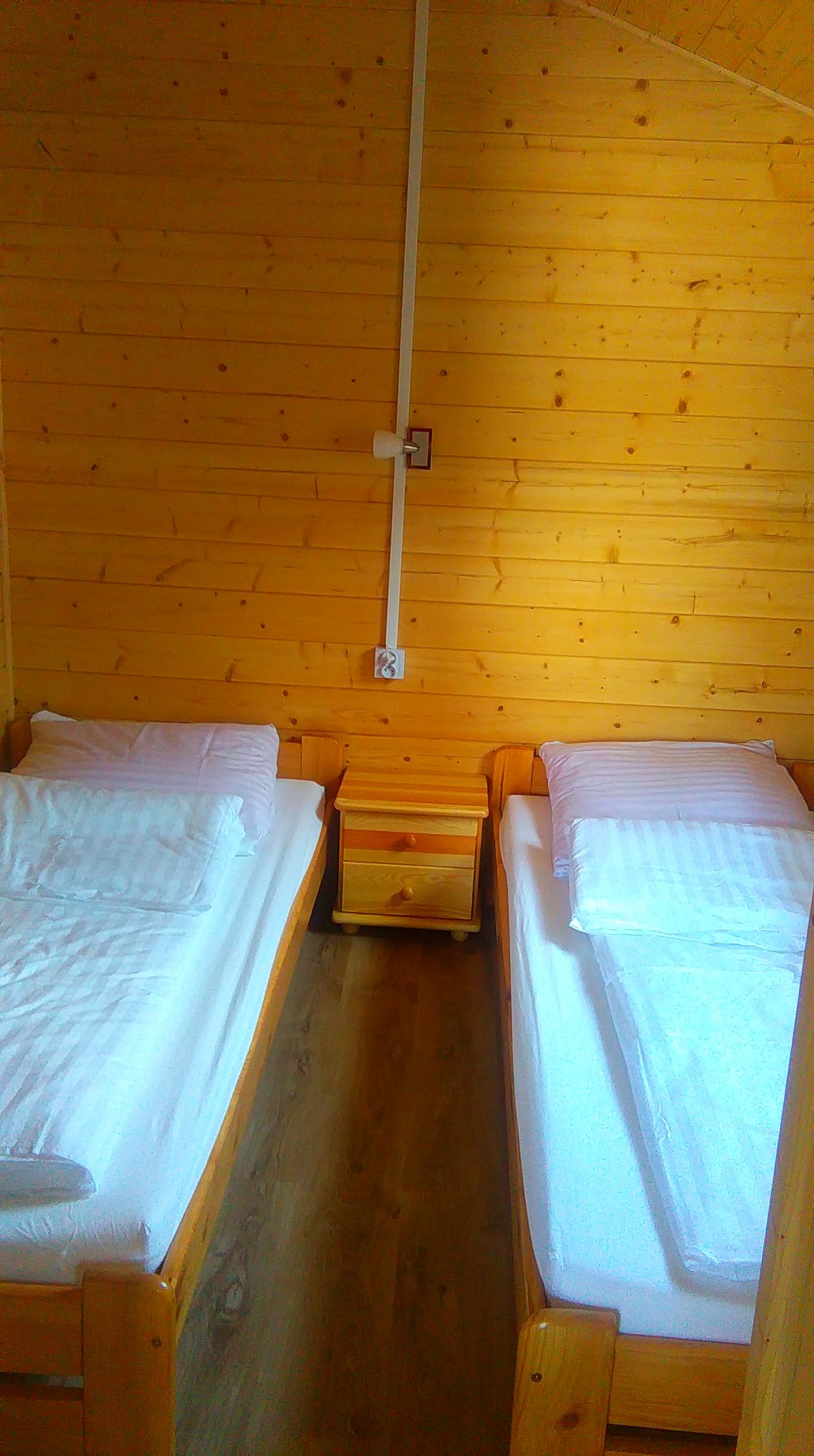 - domki drewniane 4- osobowe (dwie sypialnie +salon z aneksem, łazienka, taras)