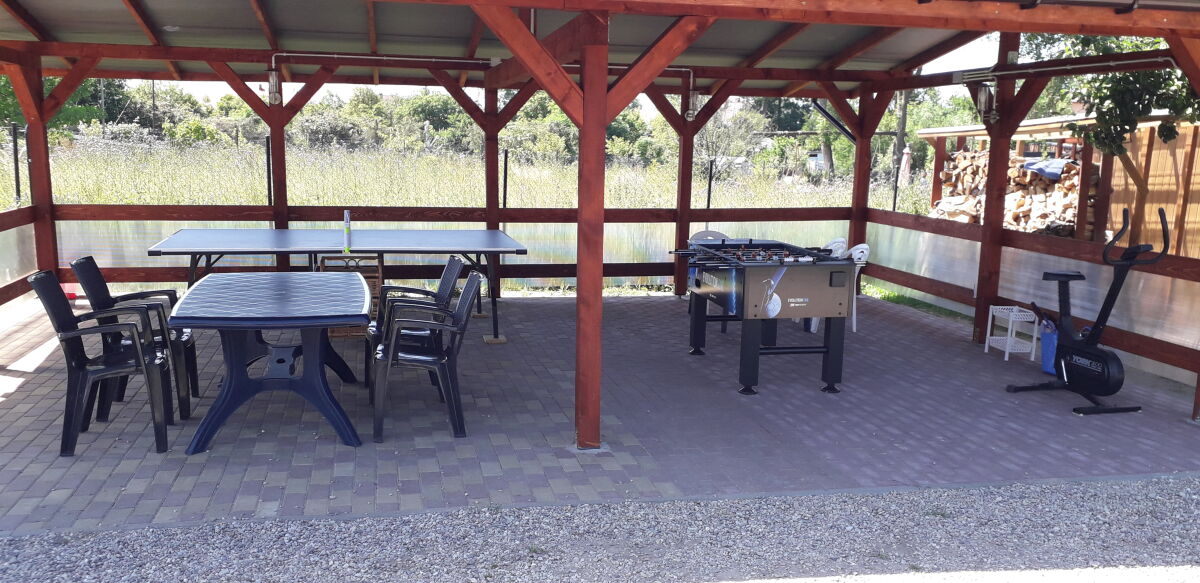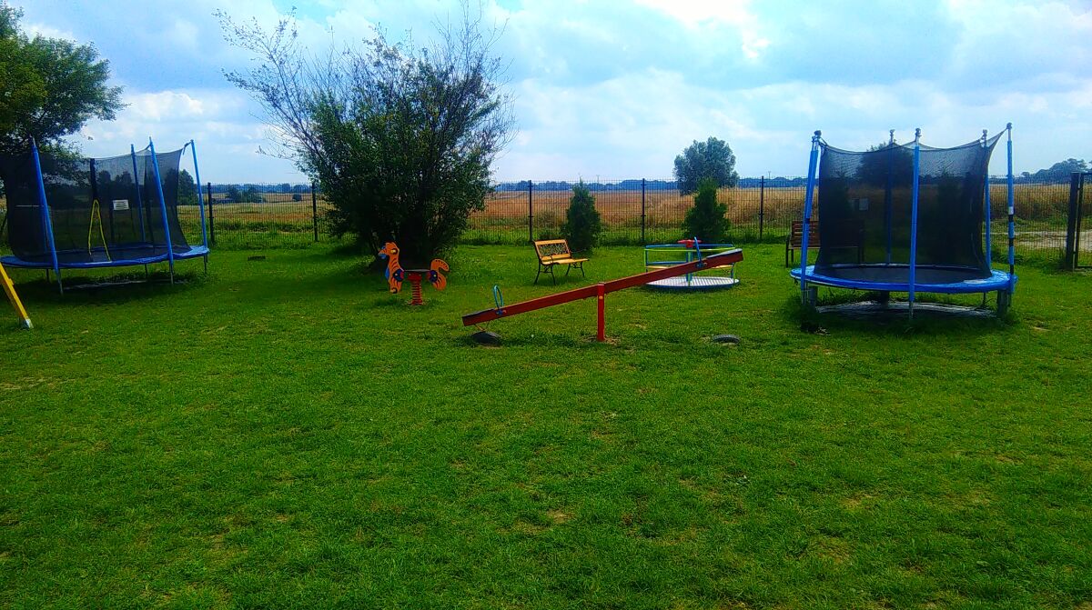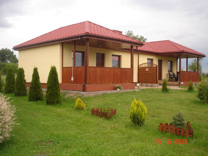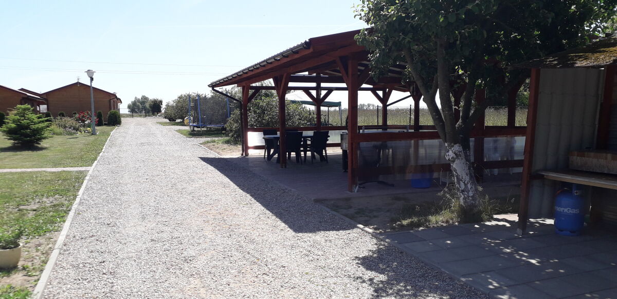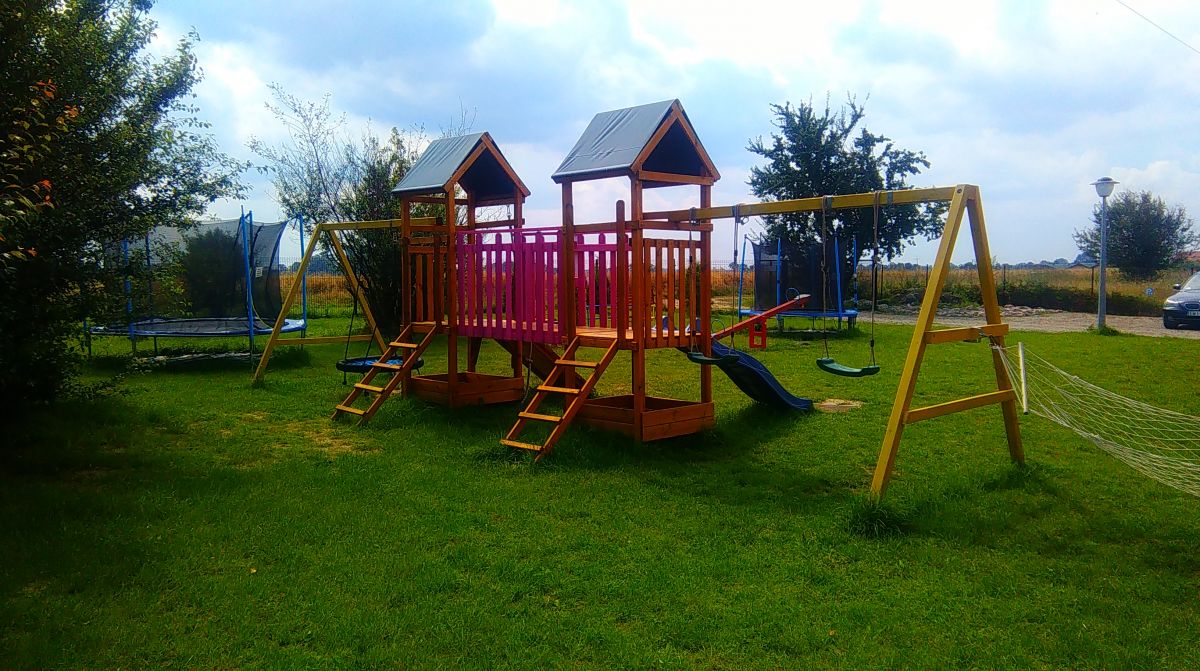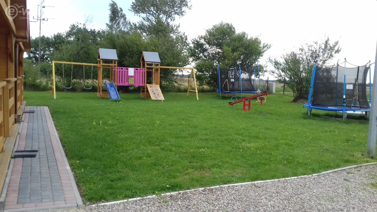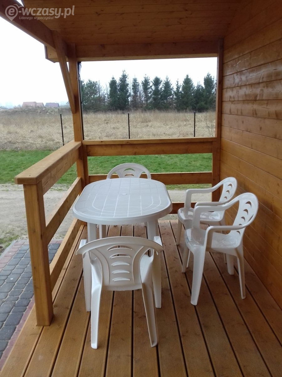 Wokół domków jest dużo zieleni. Każdy domek ma zadaszony taras z meblami ogrodowymi. Do dyspozycji jest grill. Dzieci mogą bawić się w piaskownicy, w kolorowym domku, na huśtawce, na trampolinie. Teren jest ogrodzony. Dla każdego domku jest miejsce parkingowe. W każdym domku jest lodówka, telewizor, czajnik bezprzewodowy, komplet naczyń, garnki, sztućce, komplet pościeli.