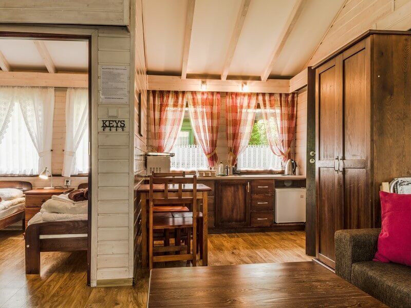 Do dyspozycji naszych Gości oddajemy 33 (2,3 i 4 osobowe) przytulne, drewniane domki oraz 6 pokoi. Wszystkie lokale wyposażone są w aneks kuchenny z niezbędnymi urządzeniami, telewizor, sejf, grill, itd. Przed każdym domkiem czekają na Gości wygodne stoły biesiadne umożliwiające wdychanie leczniczego jodu przy piciu porannej kawy lub wieczornym grillowaniu.