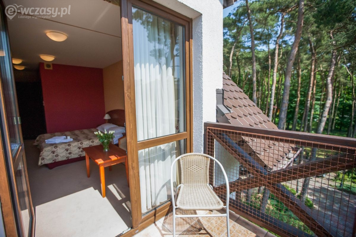 Łazienka z pełnym węzłem sanitarnym, TV z radiem i głośnikiem zewnętrznym w łazience; stałe łącze internetowe wi-fi, balkon z kompletem mebli ogrodowych ( z wyłączeniem 2-ch pokoi na parterze).