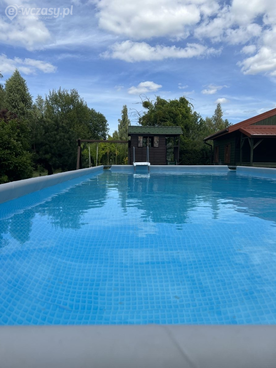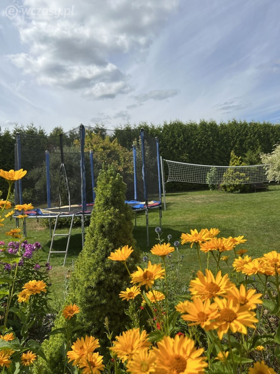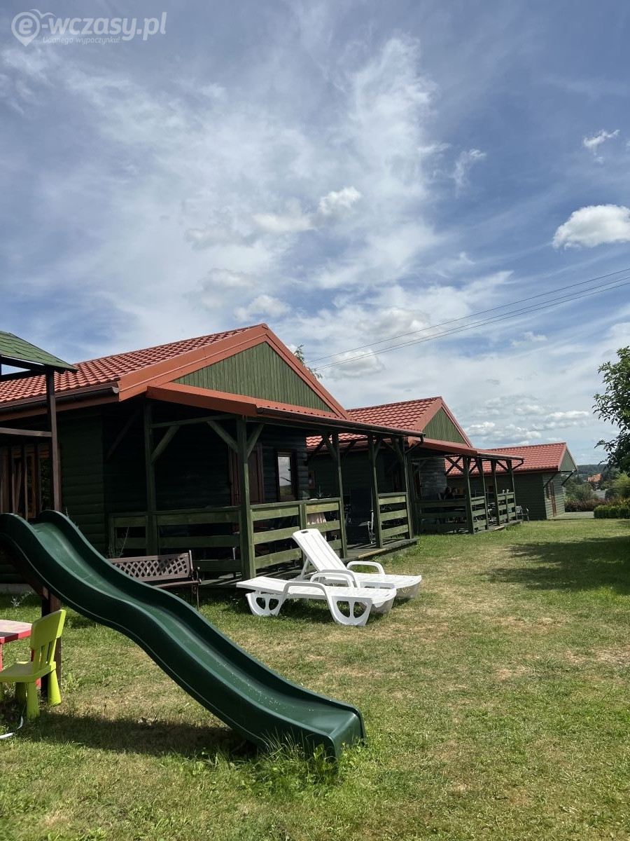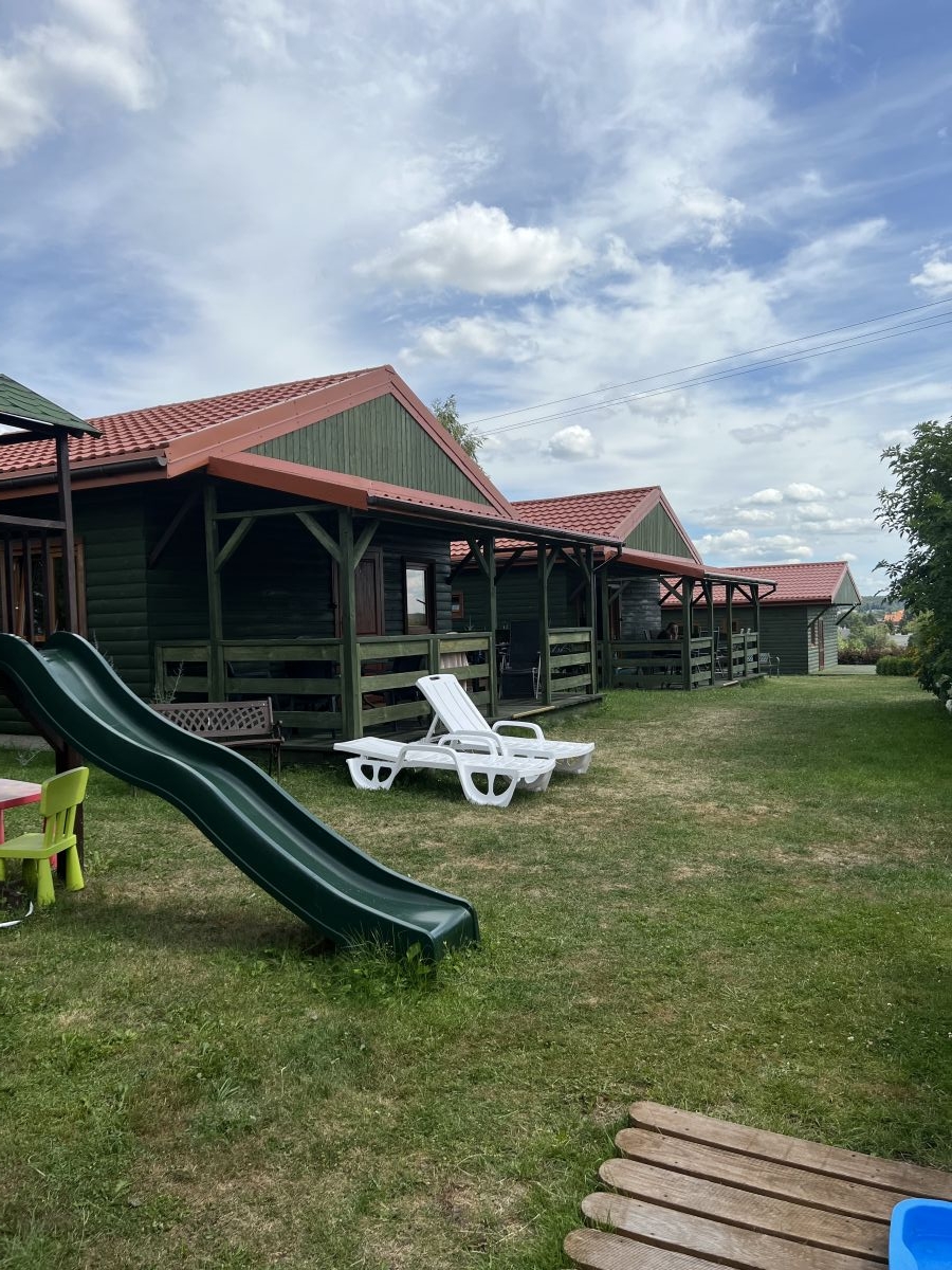 Miejsca zabaw dla dzieci: Trampolina, basen, domek, zjeżdżalnie, huśtawki, piaskownica, możliwość łowienia ryb pod opieką rodziców.