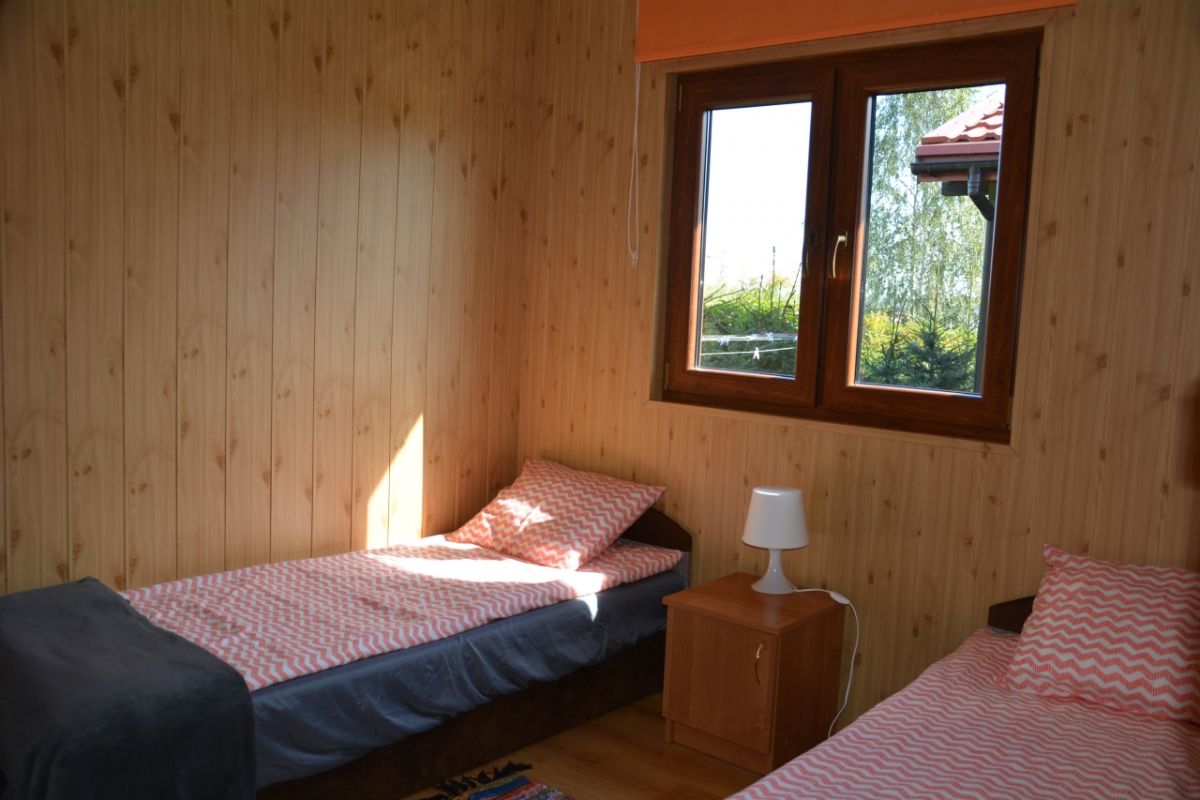 - 2 sypialnie, każda z dwoma miejscami do spania, szafy, nocny stolik, koce