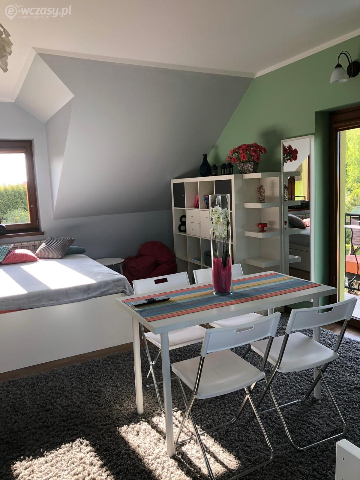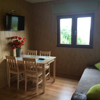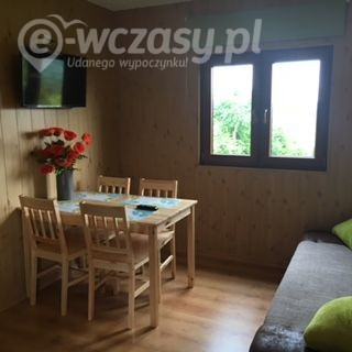 - salon – łóżko kontynentalne, stół jadalny z krzesłami, telewizor z TV naziemną, z możliwością wpięcia nośników zewnętrznych USB