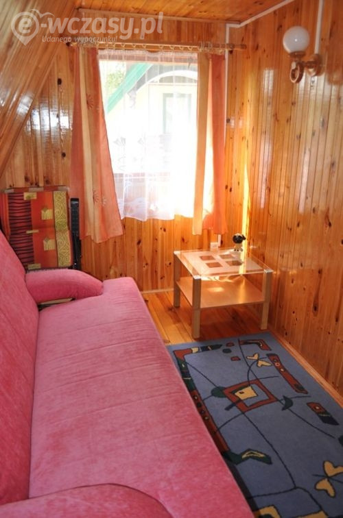 W domku znajduje się: kuchnia gazowa czteropalnikowa, czajnik elektryczny, lodówko-zamrażarka, garnki, naczynia, sztućce, kuchenka mikrofalowa, telewizor, żelazko, deska do prasowania. Do dyspozycji gości oddajemy także leżaki, dwa rowery turystyczne, grill, kojec dla maluszka.