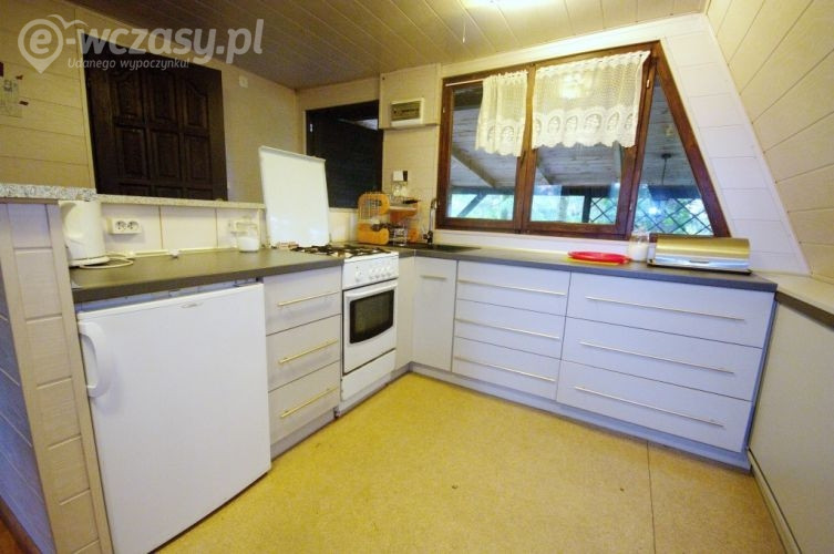 Nowoczesna kuchnia wyposażona w lodówkę, kuchnię gazową wraz z piecykiem, krajalnicę, czajnik, gofrownicę, komplet sztućców i talerzy dla max 6 osobowej rodziny.