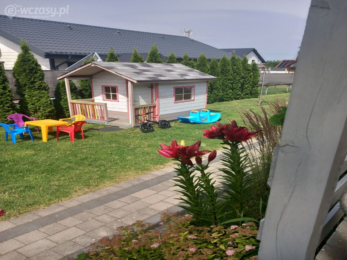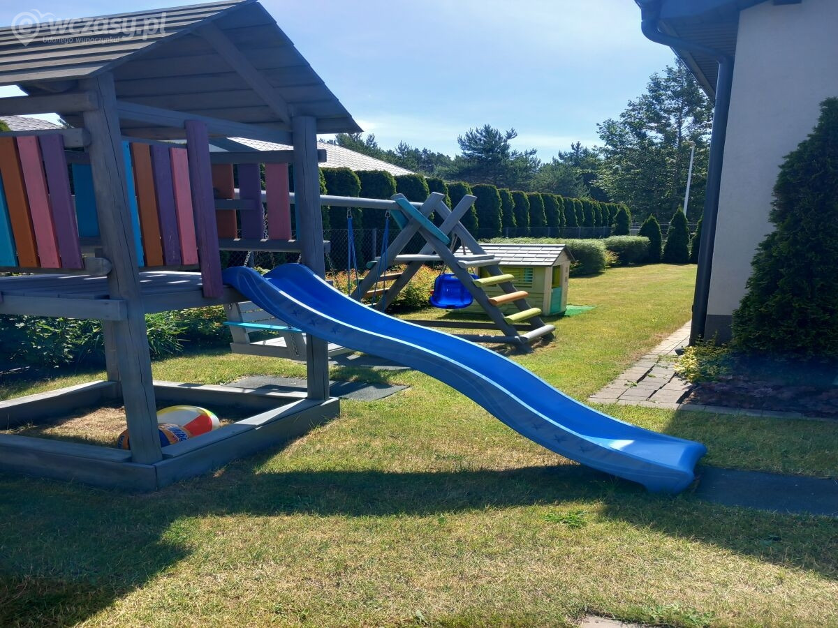-teren ogrodzony zagospodarowany(dużo zieleni) z atrakcjami dla dzieci