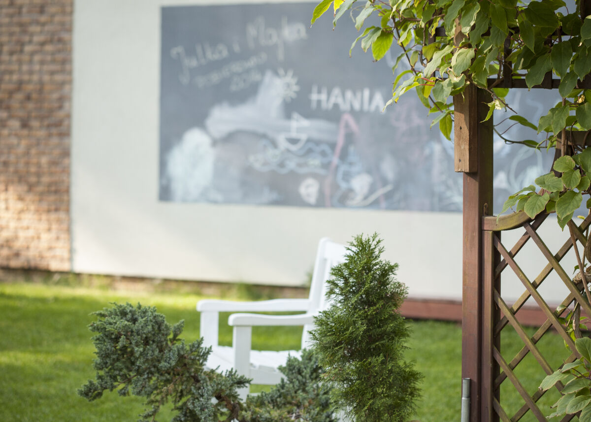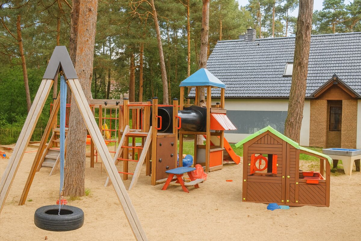 W ogrodzie czeka na dzieci bezpieczny i dobrze wyposażony plac zabaw.