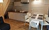 DOMEK TYPU KROKUS :zadaszony taras, 6 miejsc do spania ( 4 na poddaszu użytkowym , dwa na parterze ),wyposażony aneks kuchenny oraz łazienkę z prysznicem.