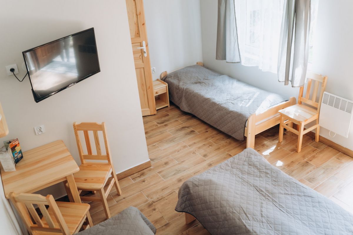 - 360 miejsc noclegowych w pokojach 2,3,4 osobowych z łazienką, TV, parawanem – Z TARASEM LUB TRAWNIKIEM,