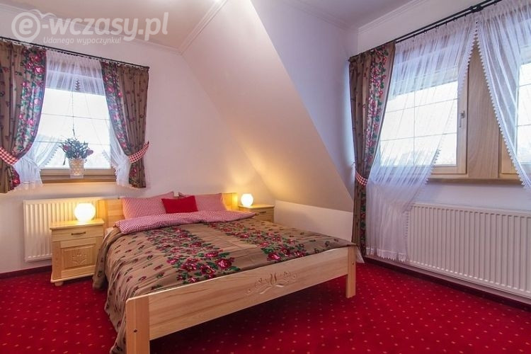 Na parterze znajduje się stylowy góralski salon z kominkiem, TV i multimediami, kąt jadalniany z ławą i aneks kuchenny w pełni wyposażony oraz łazienka. Na piętrze mieszczą się trzy sypialnie. Dwie z nich są 3-osobowe, a jedna 2-osobowa z łożem małżeńskim. Każda posiada wejście na widokowy balkon. Na korytarzu jest łazienka z prysznicem.
