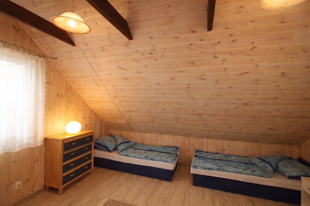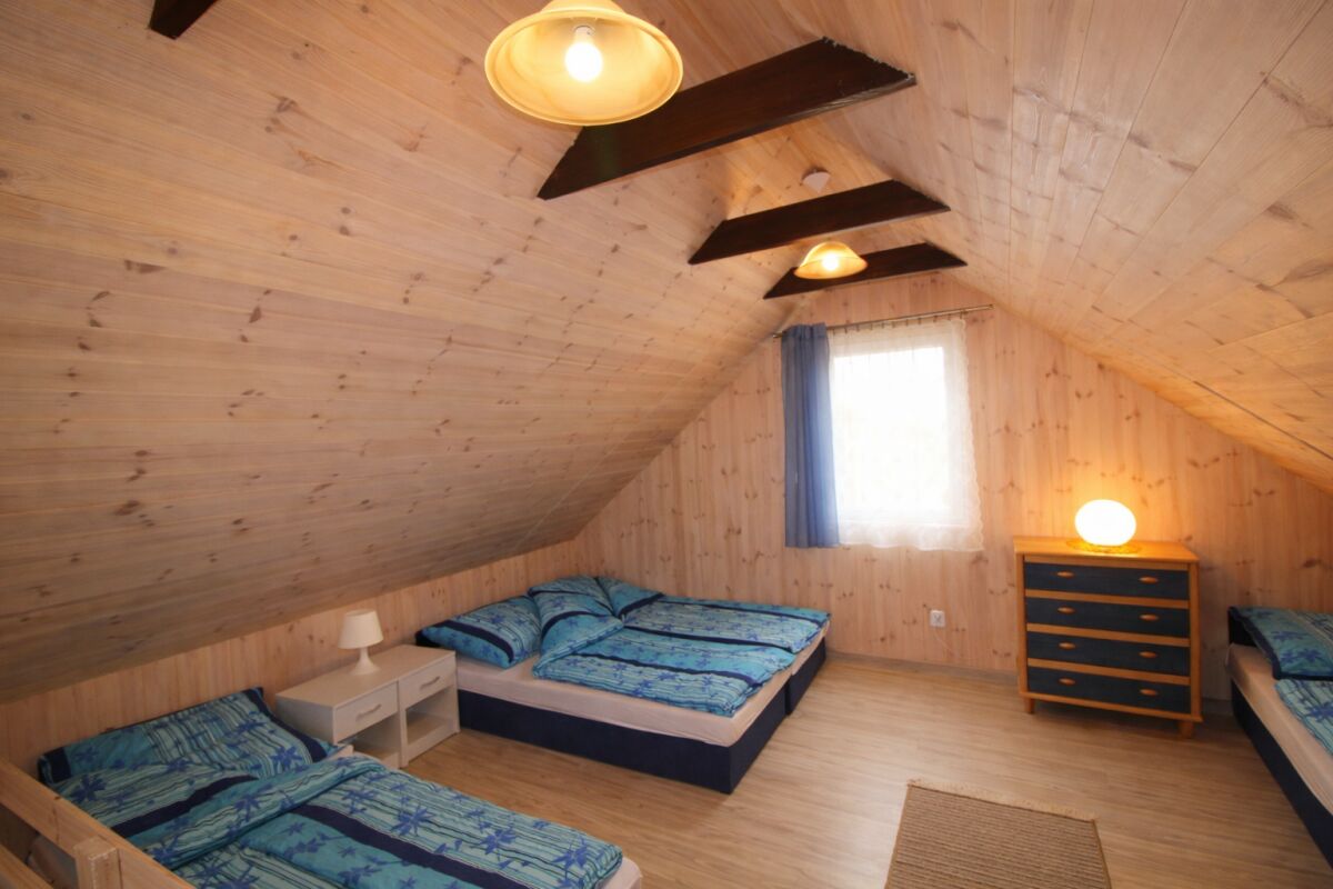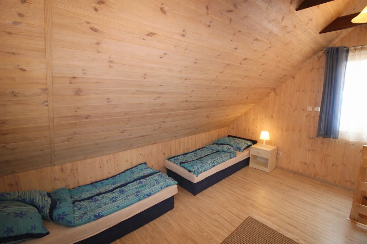 w domkach piętrowych sypialnia znajduje się na piętrze. Posiadamy również łóżeczka turystyczne dla małych dzieci.