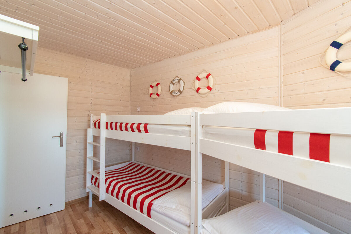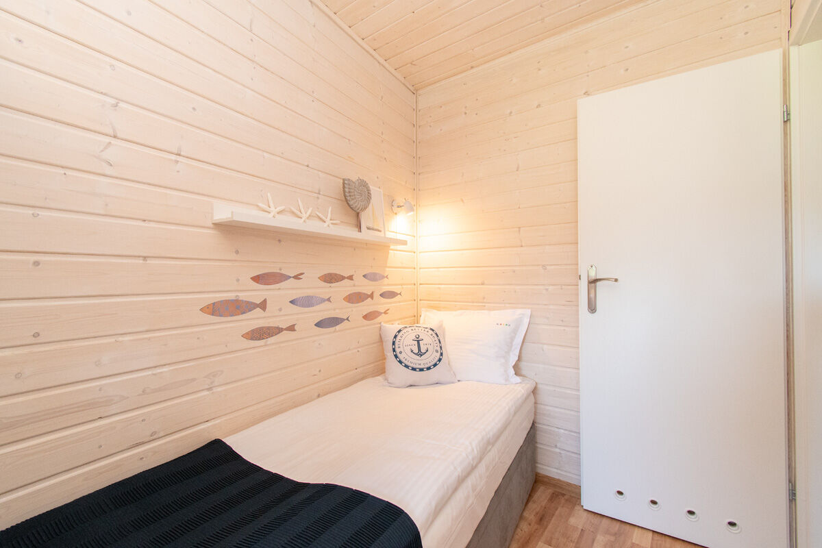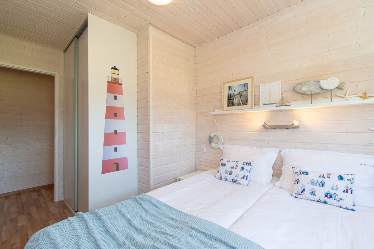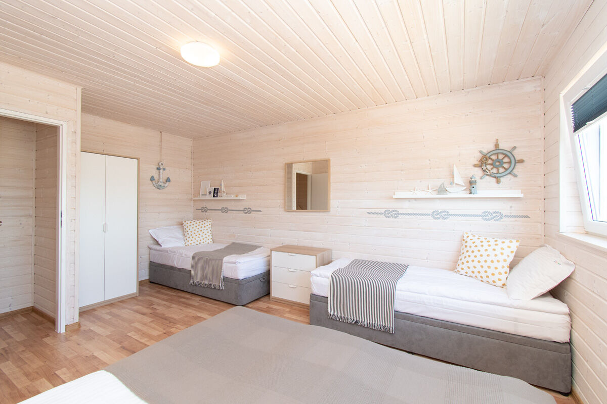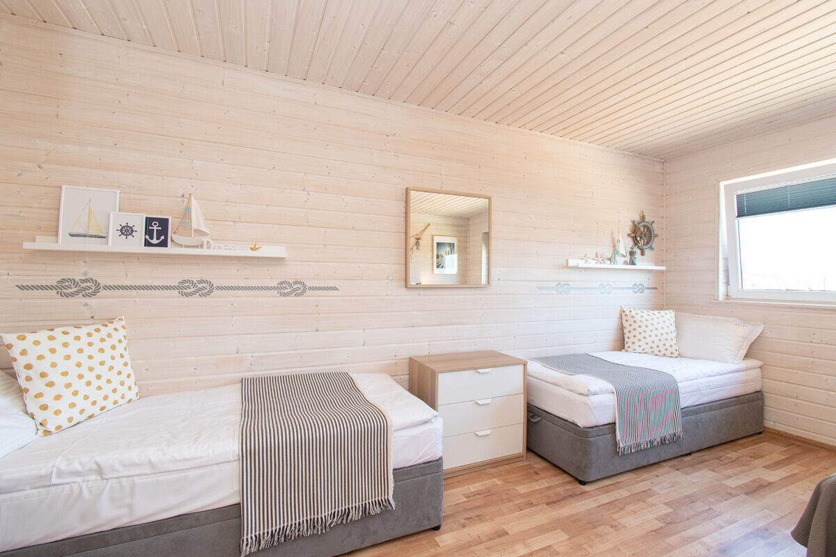 8-osobowy apartament: dwie osobne sypialnie : sypialnia z łóżkiem małżeńskim 160/200 oraz sypialnia z dwoma piętrowymi łóżkami 4 x 80/200