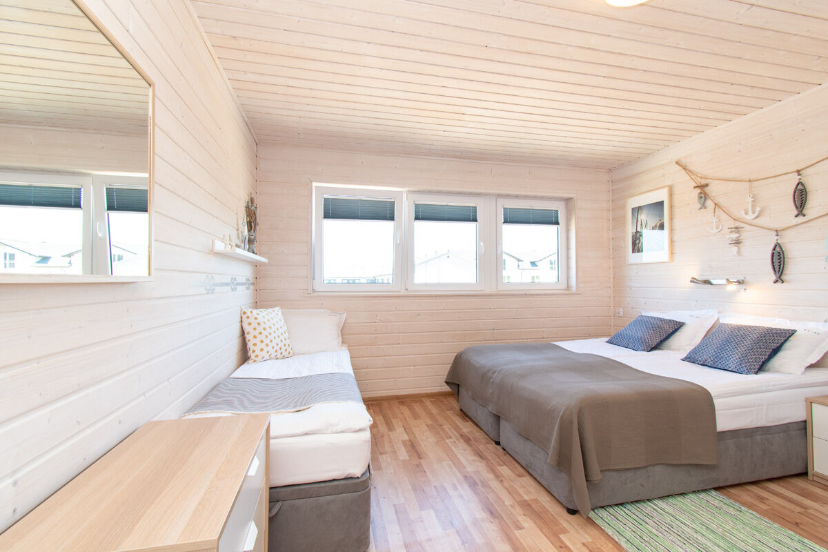 4-osobowy apartament: jedna przestronna sypialnia z łóżkiem małżeńskim 160/200 i z dwoma jednoosobowymi łóżkami 80/200;