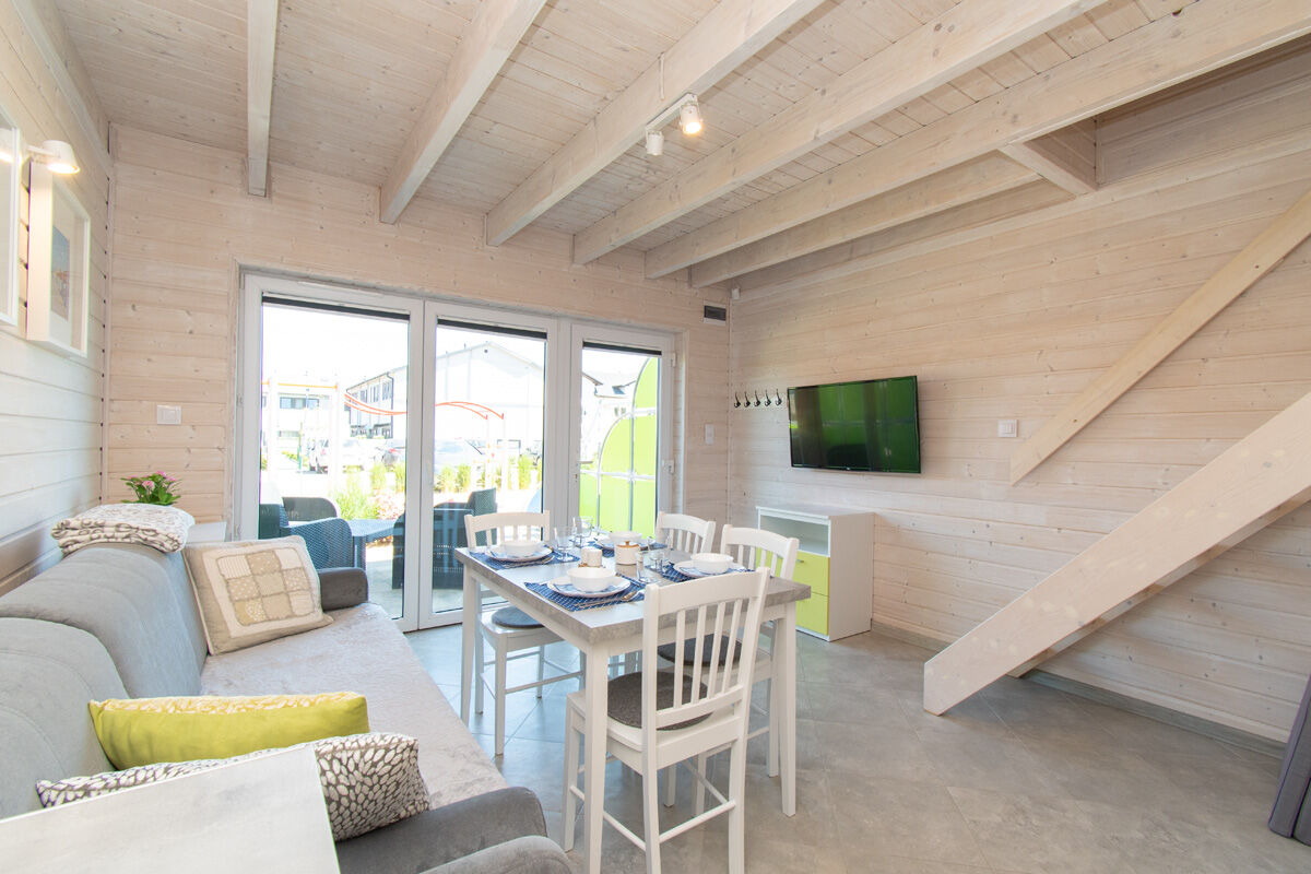 - umeblowanie w postaci rozkładanej, wygodnej kanapy - można wykorzystać jako dodatkowe miejsce do spania 155/200 (w stanie nie rozłożonym powierzchnia spania 80/200);