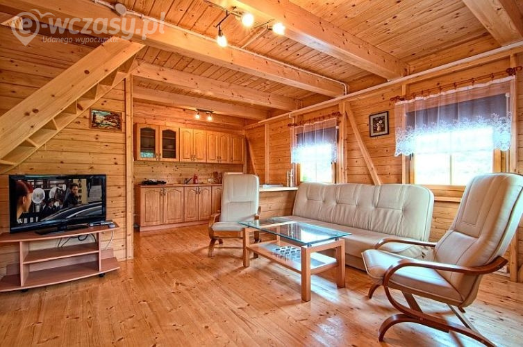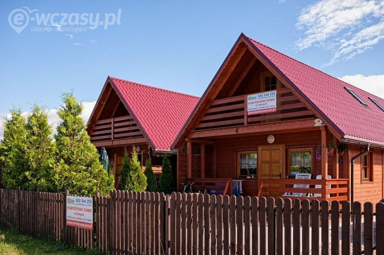 Oferujemy Państwu wynajem czterech komfortowych, drewnianych domków letniskowych, 60 m2 i 15 m2 tarasu.