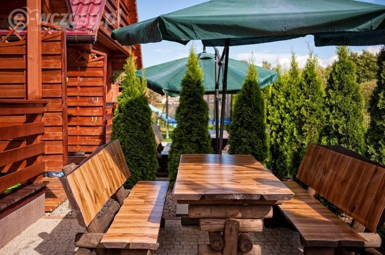 Każdy domek posiada swój własny taras, zestaw mebli ogrodowych, grill ogrodowy ogólnodostępny.