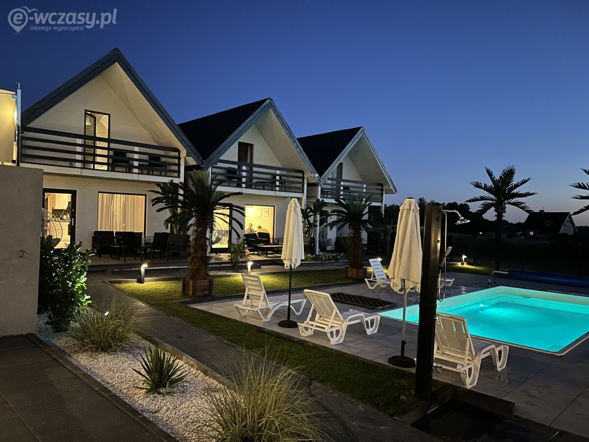Basen z podgrz. wodą, balia fińska. Rowery, gokardy, przejażdzki melexem. Wi-fi, grill, parking, plac zabaw, animacje. Komfortowe, ogrzewane, klimatyzowane domki.