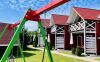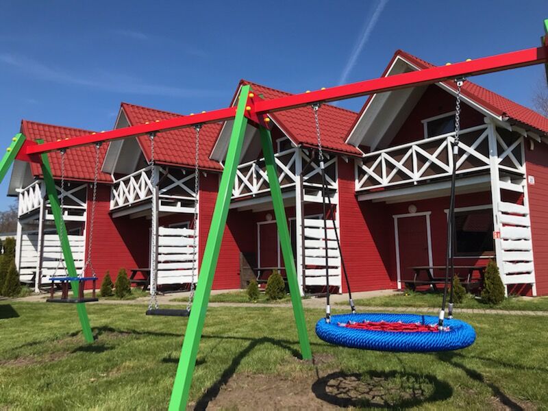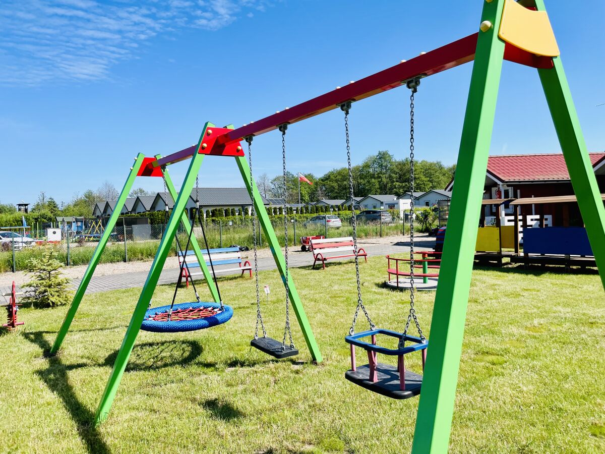 - dobrze wyposażonego placu zabaw, świetnie widocznego z każdego domku (karuzela, bujaki koniki, trampolina, lokomotywa, piaskownica, huśtawki, traktory, duży szałas do gier i zabaw, chroni przed słońcem lub deszczem i wiele, wiele innych zabawek),