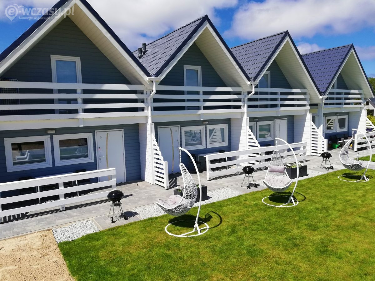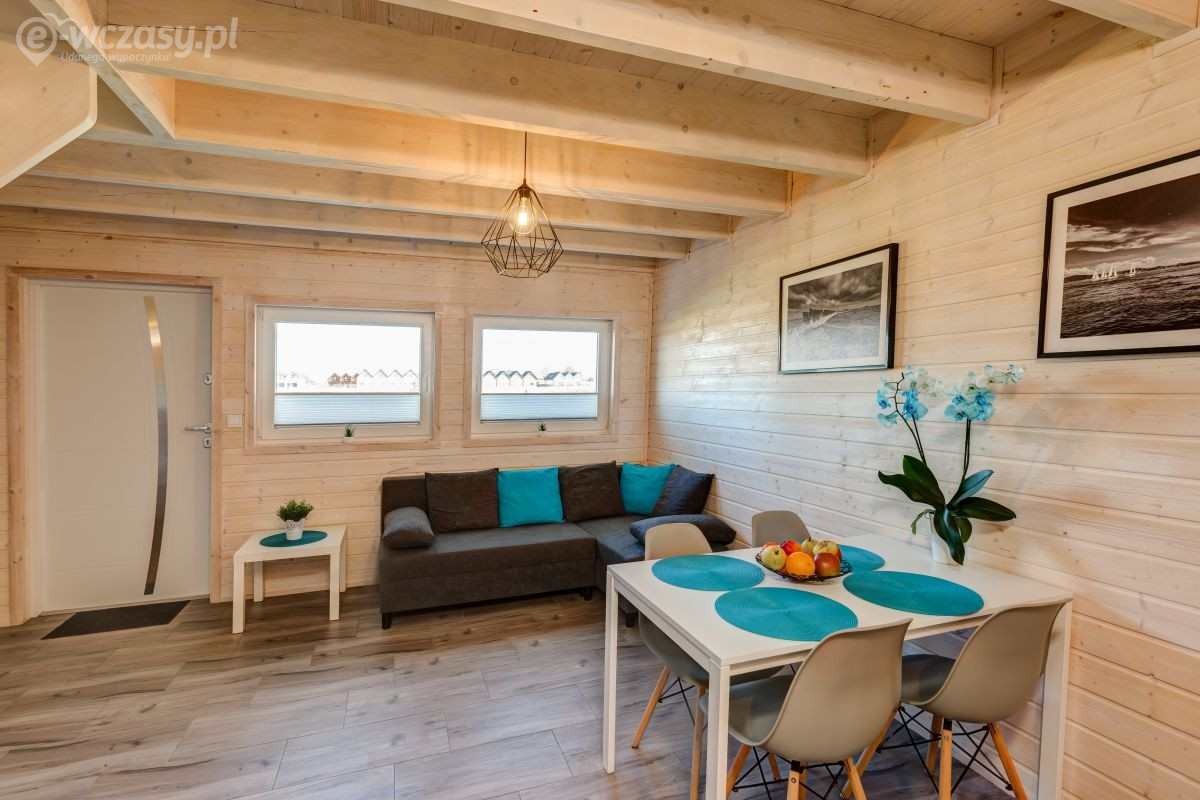 Piętrowe domki są duże (50m2 + taras 10m2 + balkon 5m2) i pomieszczą maksymalnie 8 osób.