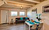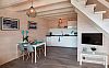 Piętrowe domki są duże (50m2 + taras 10m2 + balkon 5m2) i pomieszczą maksymalnie 8 osób.