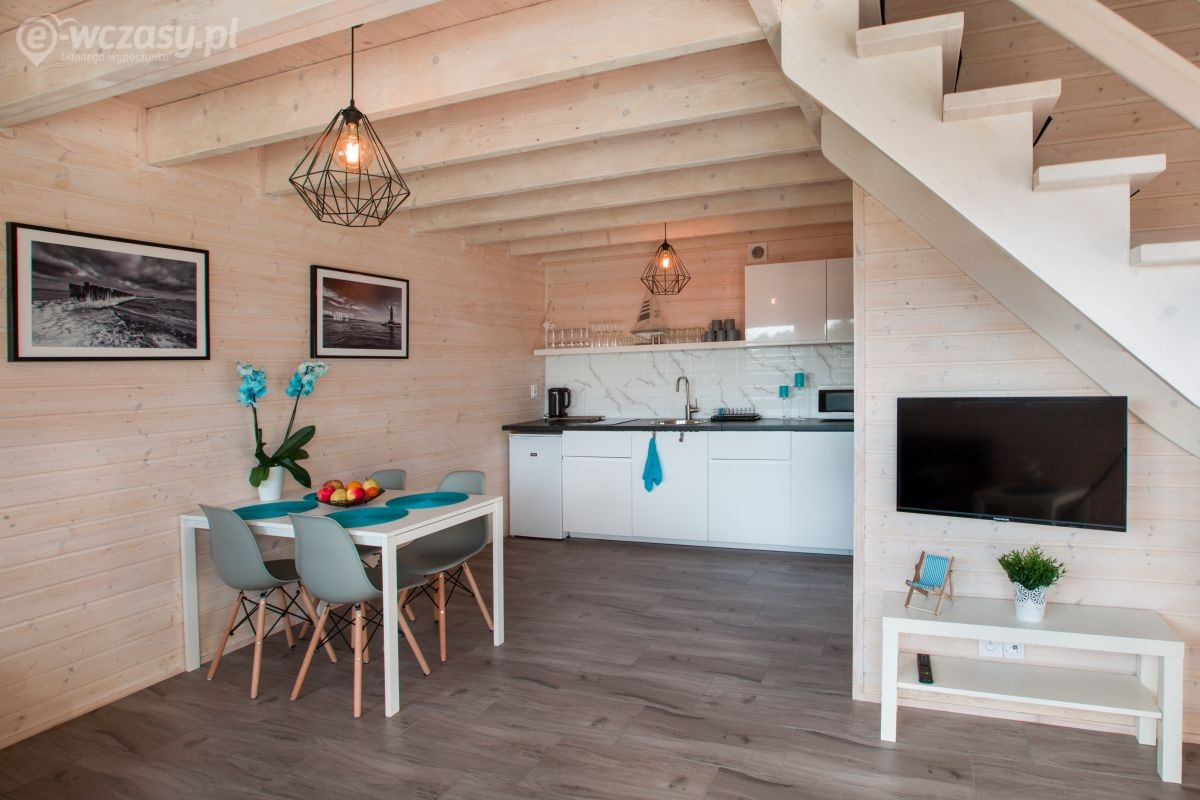 Piętrowe domki są duże (50m2 + taras 10m2 + balkon 5m2) i pomieszczą maksymalnie 8 osób.