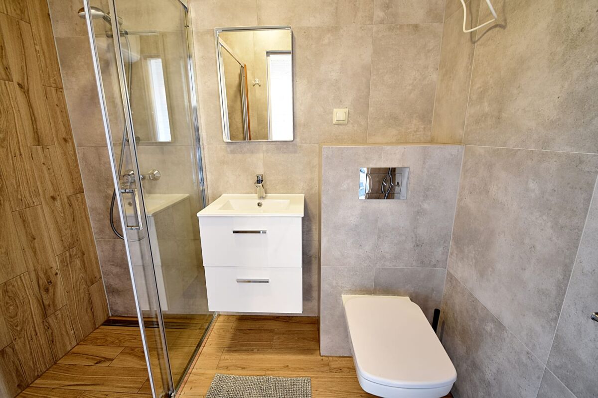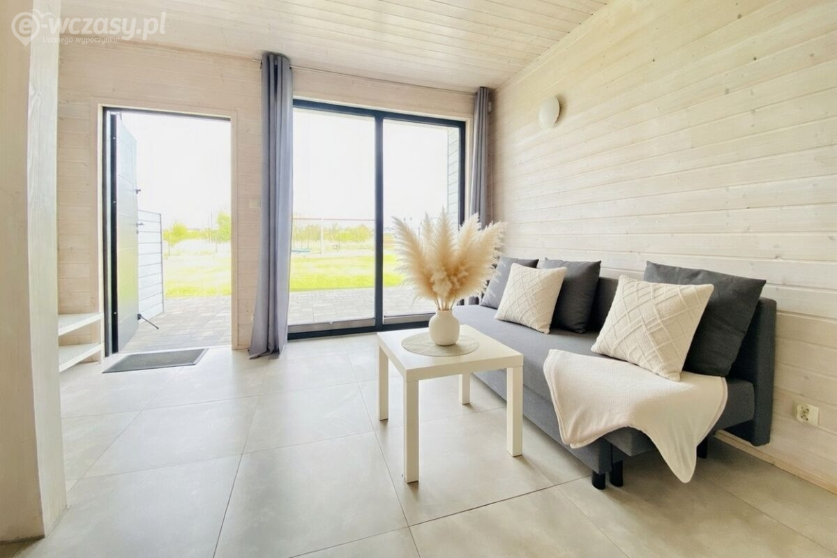 Każdy domek przeznaczony jest dla 6 osób (z możliwością dostawek) i składa się z: