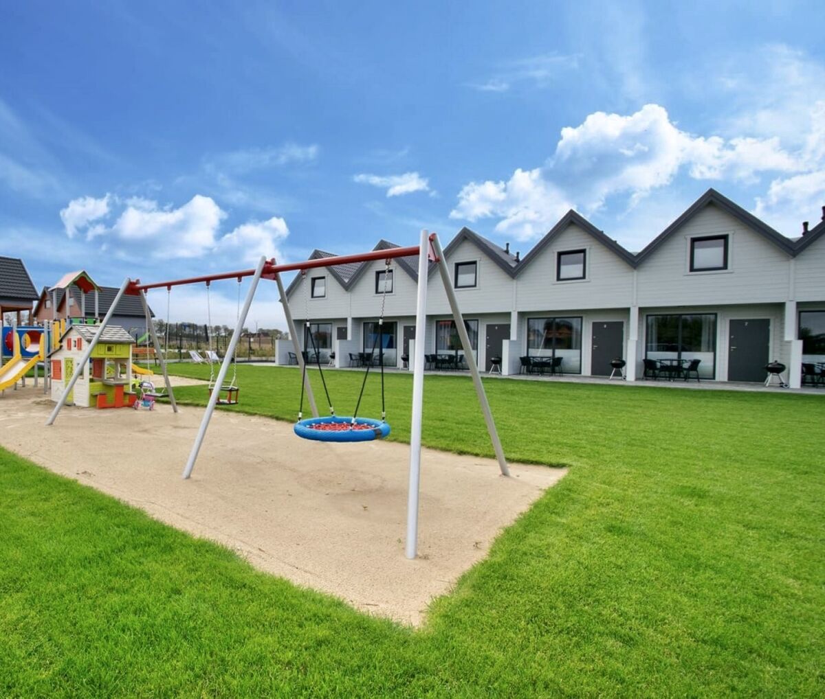 Sand Sarbinowo to kameralny, rodzinny ośrodek z komfortowymi domkami letniskowymi, położony w spokojnej części Sarbinowa – zaledwie 700 m od plaży i centrum. Idealne miejsce na wypoczynek z dziećmi, z dala od miejskiego zgiełku, a jednocześnie blisko wszystkich atrakcji.