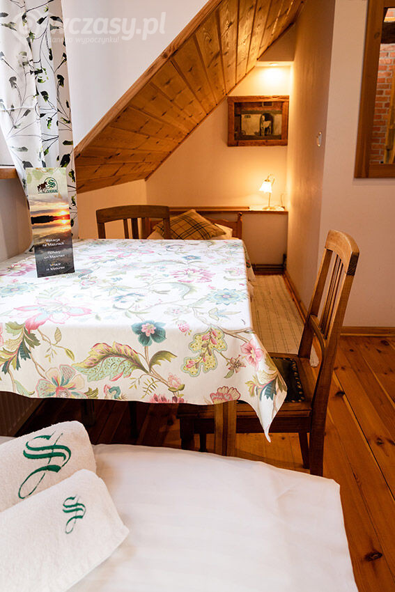 Pensjonat położony na terenie malowniczych Mazur, otoczony lasami i cudownym, czystym jeziorem z piękną plażą oferuje niezapomniane widoki i możliwość spędzania czasu na świeżym powietrzu. Mieści się w odrestaurowanym poniemieckim zajeździe, który zachwyca swoją architekturą. Historia tego budynku sięga XIX wieku, a obecnie budynek zachowuje ducha przeszłości, a jednocześnie oferuje nowoczesne udogodnienia dla naszych gości.