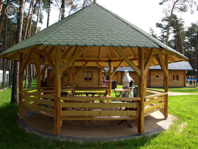 Wykonane z drewna świerkowego zapewniają wysokiej klasy odpoczynek. W każdym domku znajduje się przestronna łazienka, w pełni wyposazony aneks kuchenny, pokój dzienny z wygodną, rozkładaną sofą. Na piętrze znajduje się sypialnia z łozem małżeńskim oraz pokój półotwarty z dwoma jednoosobowymi łóżkami. Każdy domek posiada tarasik idealny na poranną kawę. Są one idealne dla rodziny z dwójka dzieci lub grupki znajomych.