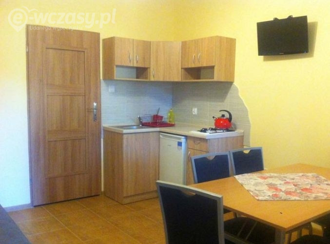 Domki przeznaczone są dla 4 osób (domek jednopokojowy) lub dla 6 osób (domki dwupokojowe). Każdy domek posiada aneks kuchenny w pełni wyposażony (lodówka, kuchenka, zestaw garnków, czajnik, naczynia), TV, łazienkę z prysznicem, zadaszony oraz ogrodzony taras.