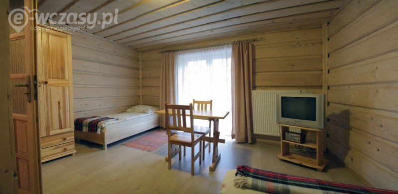Dysponujemy pokojami 2, 3 osobowymi w domku góralskim. Wszystkie pokoje posiadają łazienkę z natryskiem, TV, radio, czajnik bezprzewodowy, talerze, szklanki, sztućce, Internet, dostępna lodówka i kuchenka mikrofalowa. Pokoje urządzone są w stylu góralskim w drewnie.
