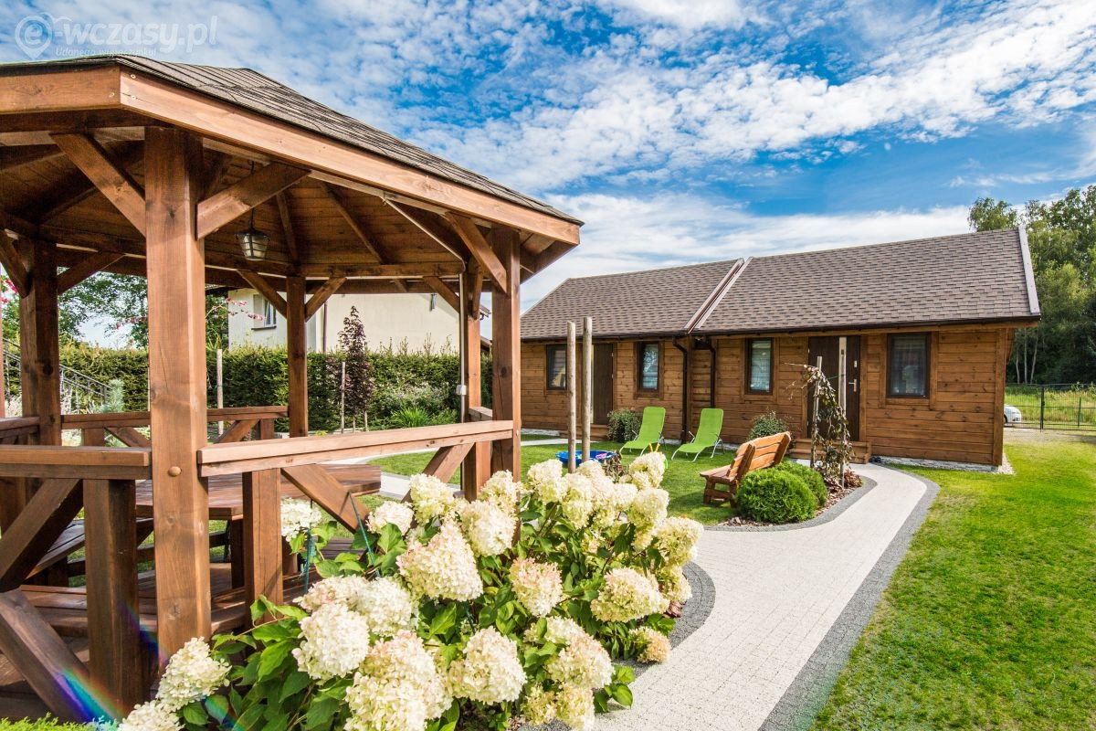 2 komfortowe domki drewniane ,8 osobowe , w pełni wyposażone z dwiema sypialniami na górze.