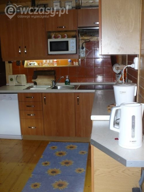 - kuchnia (stół, 4 krzesła, lodówka, zmywarka do naczyń, płyta elektryczna, naczynia, mikrofalówka, sandwitch)