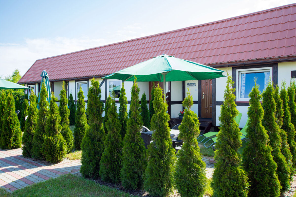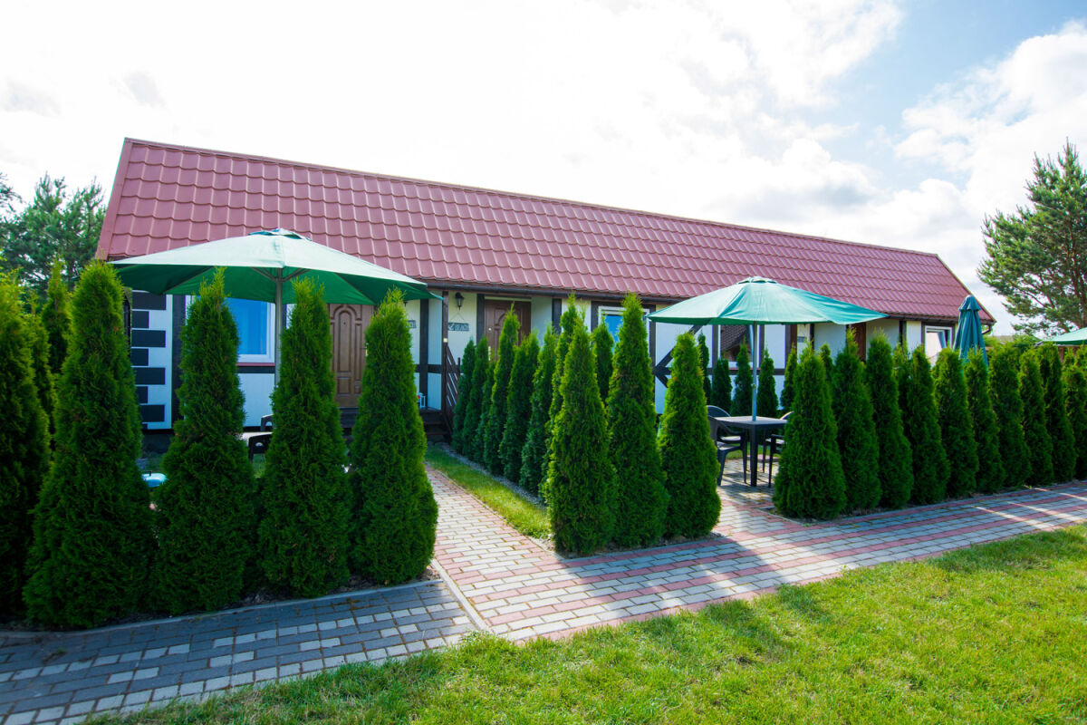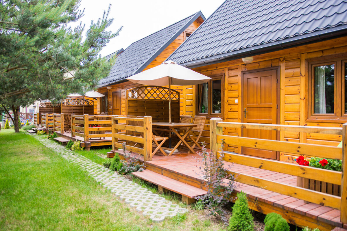 Oferujemy dwa rodzaje domków: drewniane dla 6-7 osób oraz parterowe dla 4-6 osób.