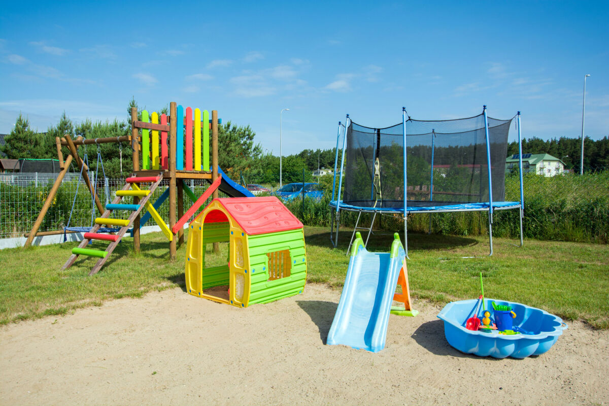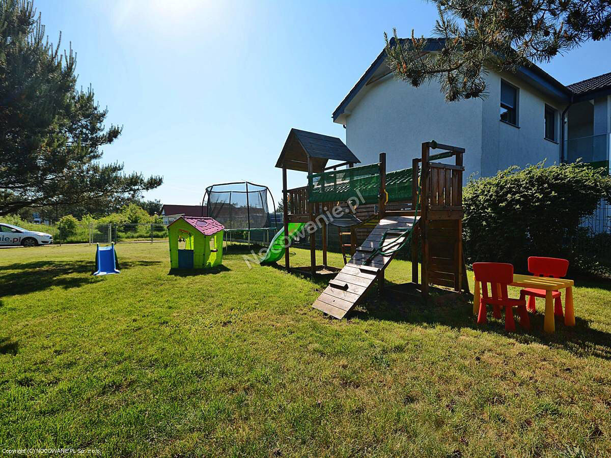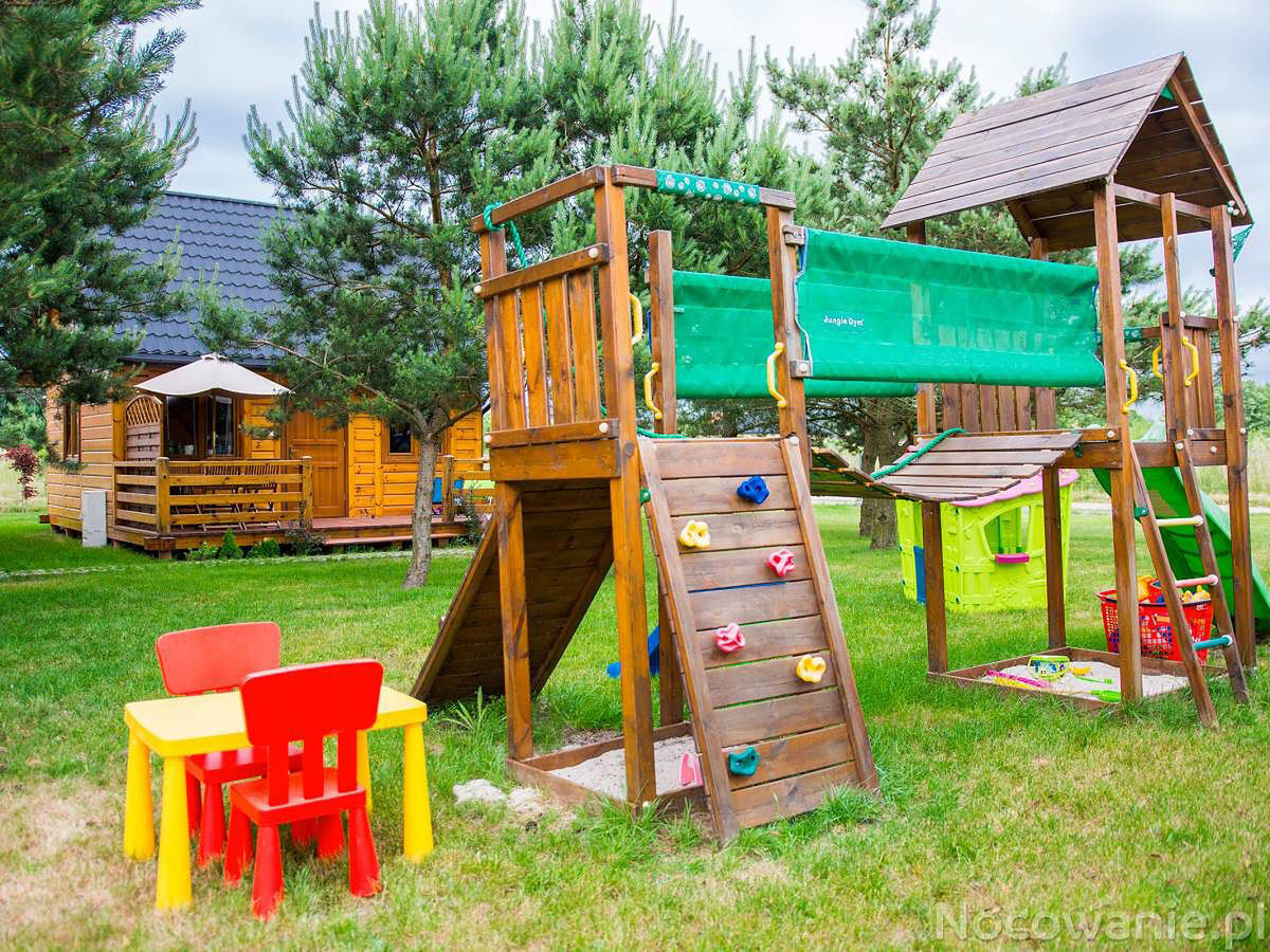 W każdym domku znajduje się TV LED, w pełni wyposażona kuchnia (kuchnia ceramiczna, talerze, sztućce, garnki, czajnik elektryczny, lodówka) oraz suszarka do prani. Dodatkowo każdy z domków posiada internet WIFI, a także zestaw mebli ogrodowych wraz z grillem, parawanem oraz leżakiem. Na terenie obiektu znajduje się plac zabaw dla dzieci.