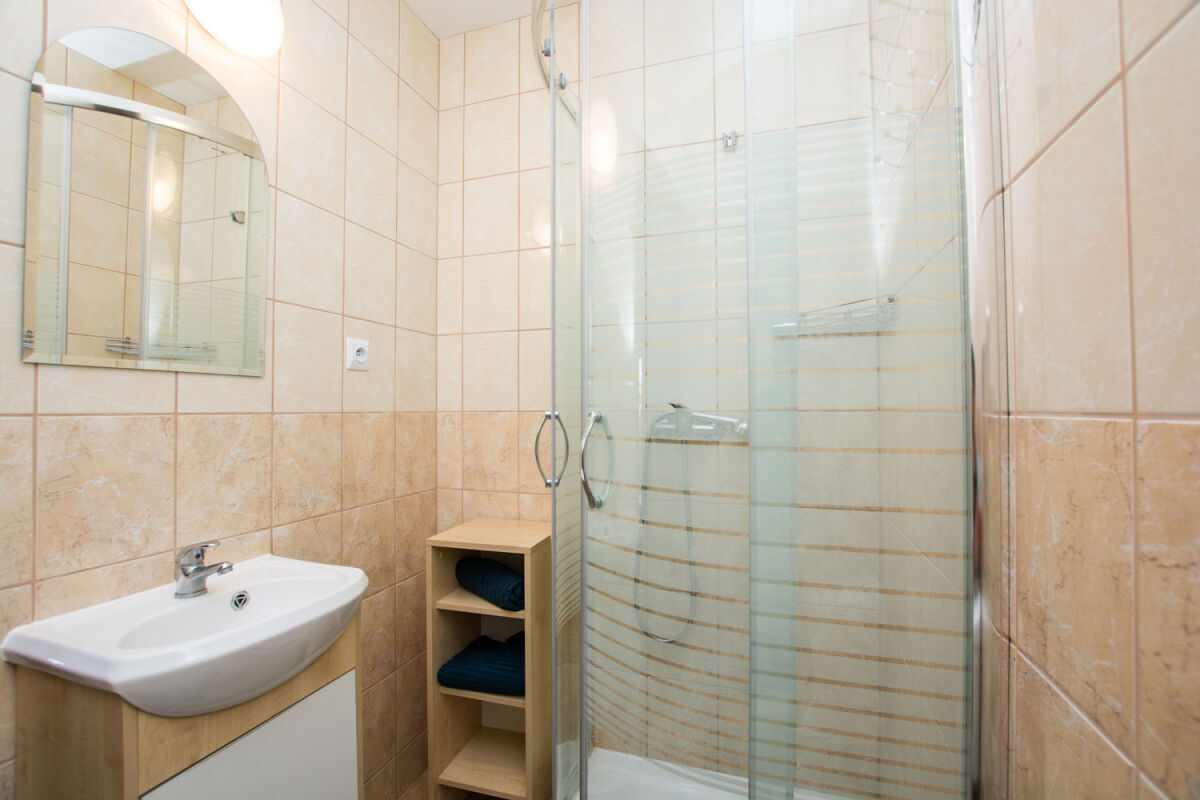 W salonie znajduje się rozkładana sofa z możliwością spania dla 2 osób. Łazienka (toaleta, prysznic).