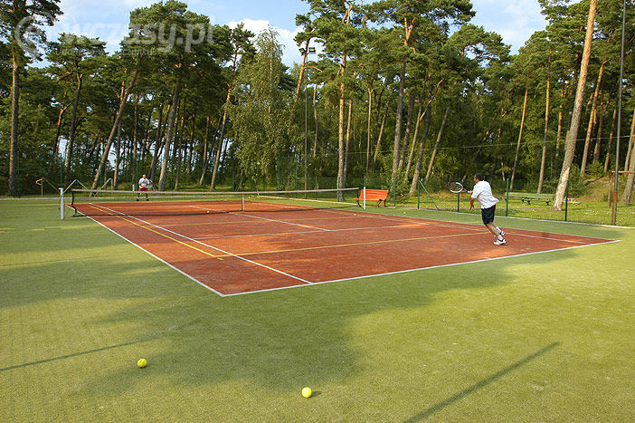 - oświetlany kort tenisowy kryty nawierzchnią syntetyczną