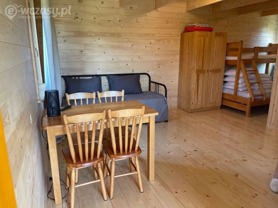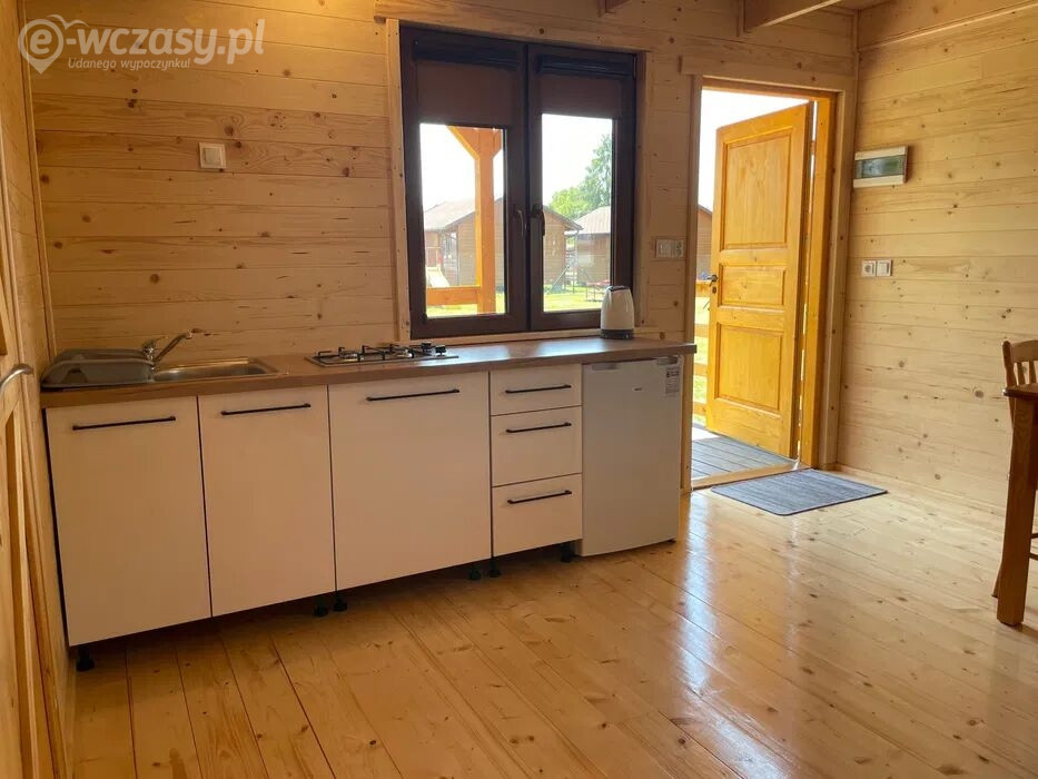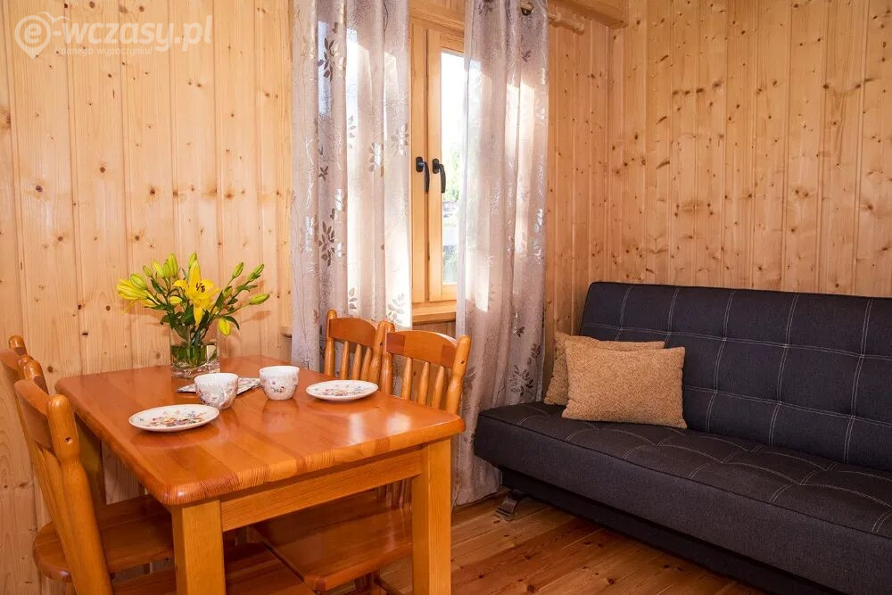 Do Państwa dyspozycji oddajemy komfortowe drewniane domki letniskowe 4-osobowe wyposażone w: